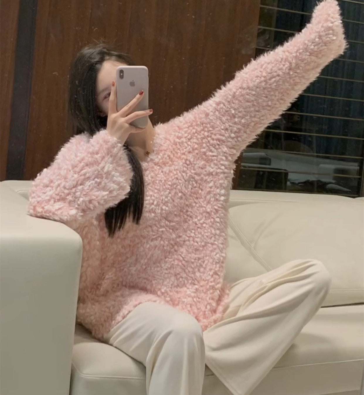 Розовый лонгслив, осенний трикотажный свитер, коллекция 2023, оверсайз