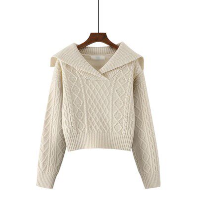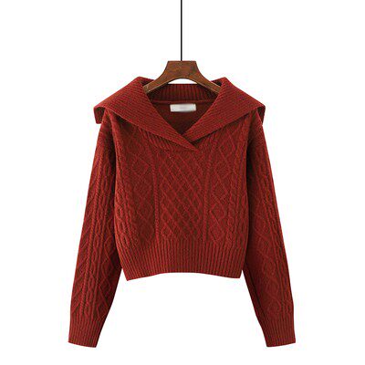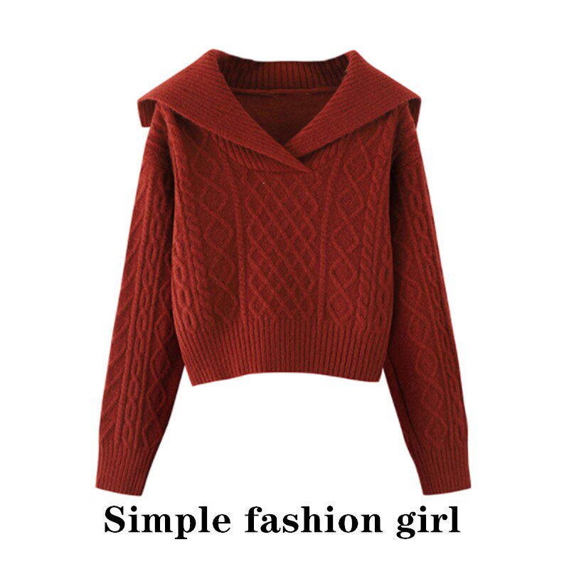 Ретро осенний короткий свитер, шерстяной трикотажный лонгслив, высокая талия, подходит для подростков