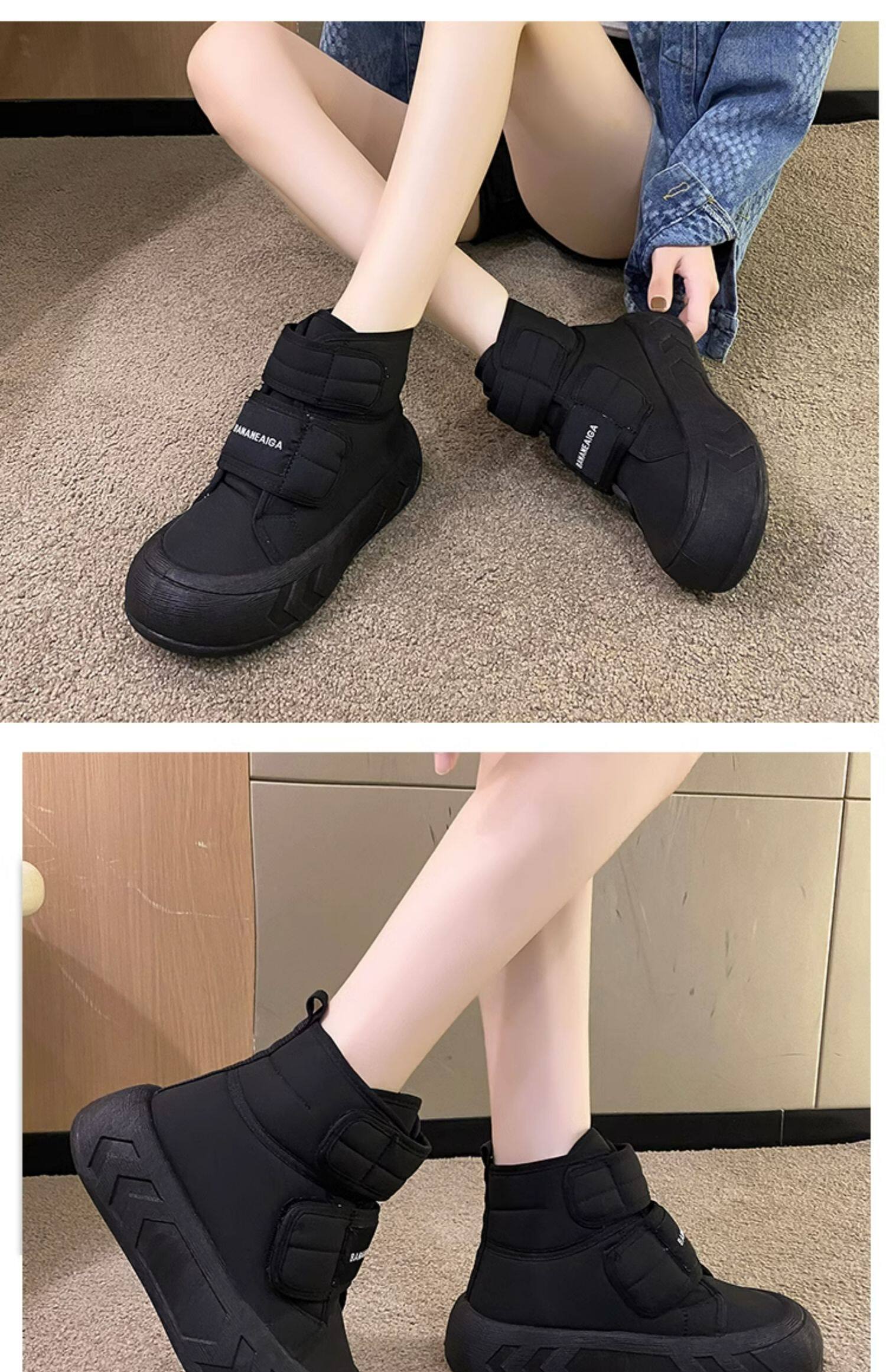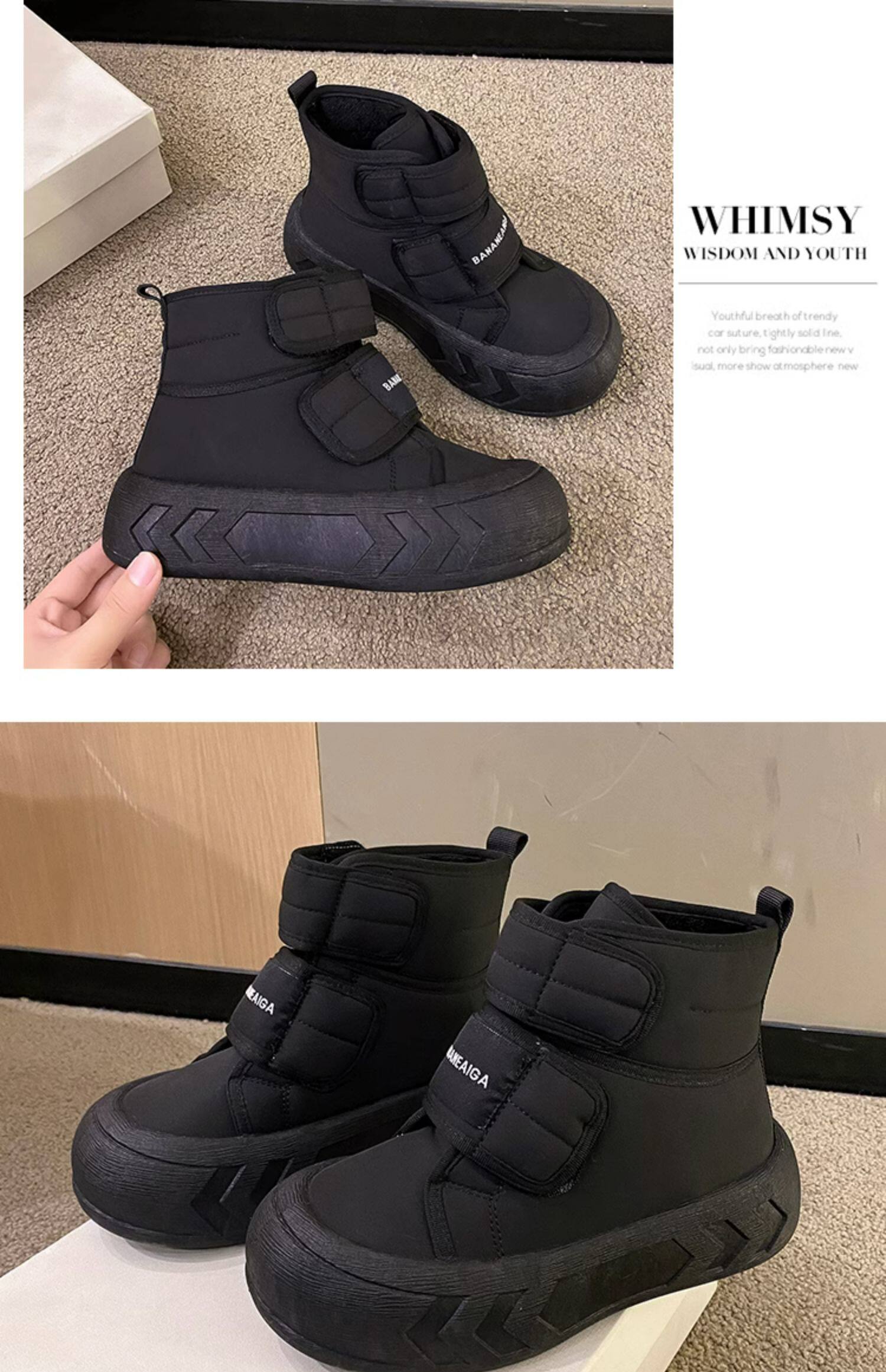 Зимние утепленные универсальные сапоги на липучке на платформе с пухом, высокая спортивная обувь, 2023 года