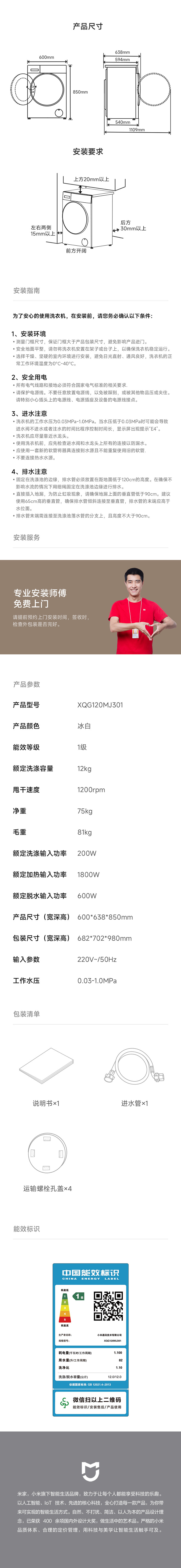 [Правительственная субсидия 20%] Семейная барабанная машина Xiaomi Mimi 12 кг ультра -тетонная дома