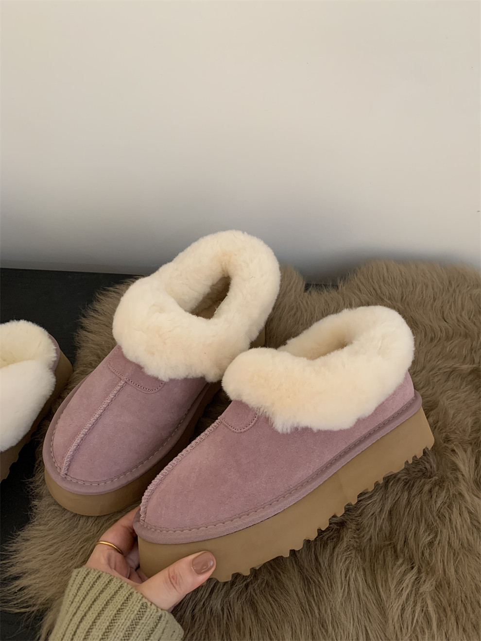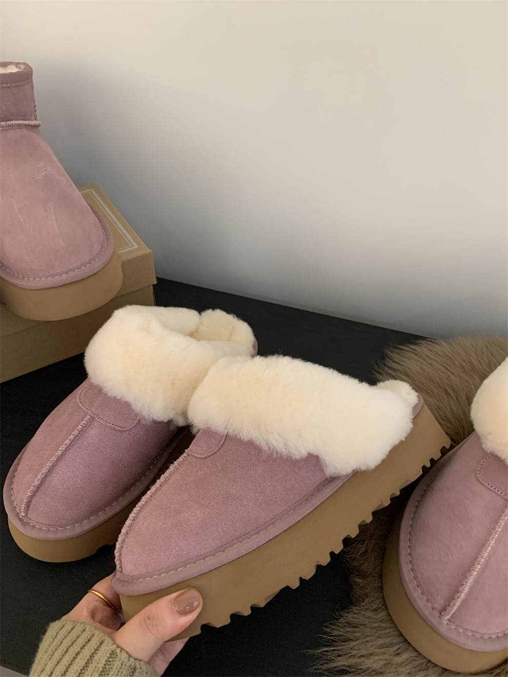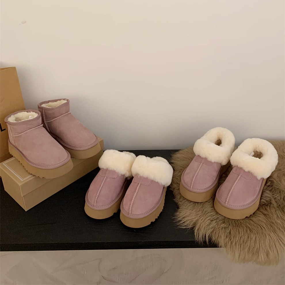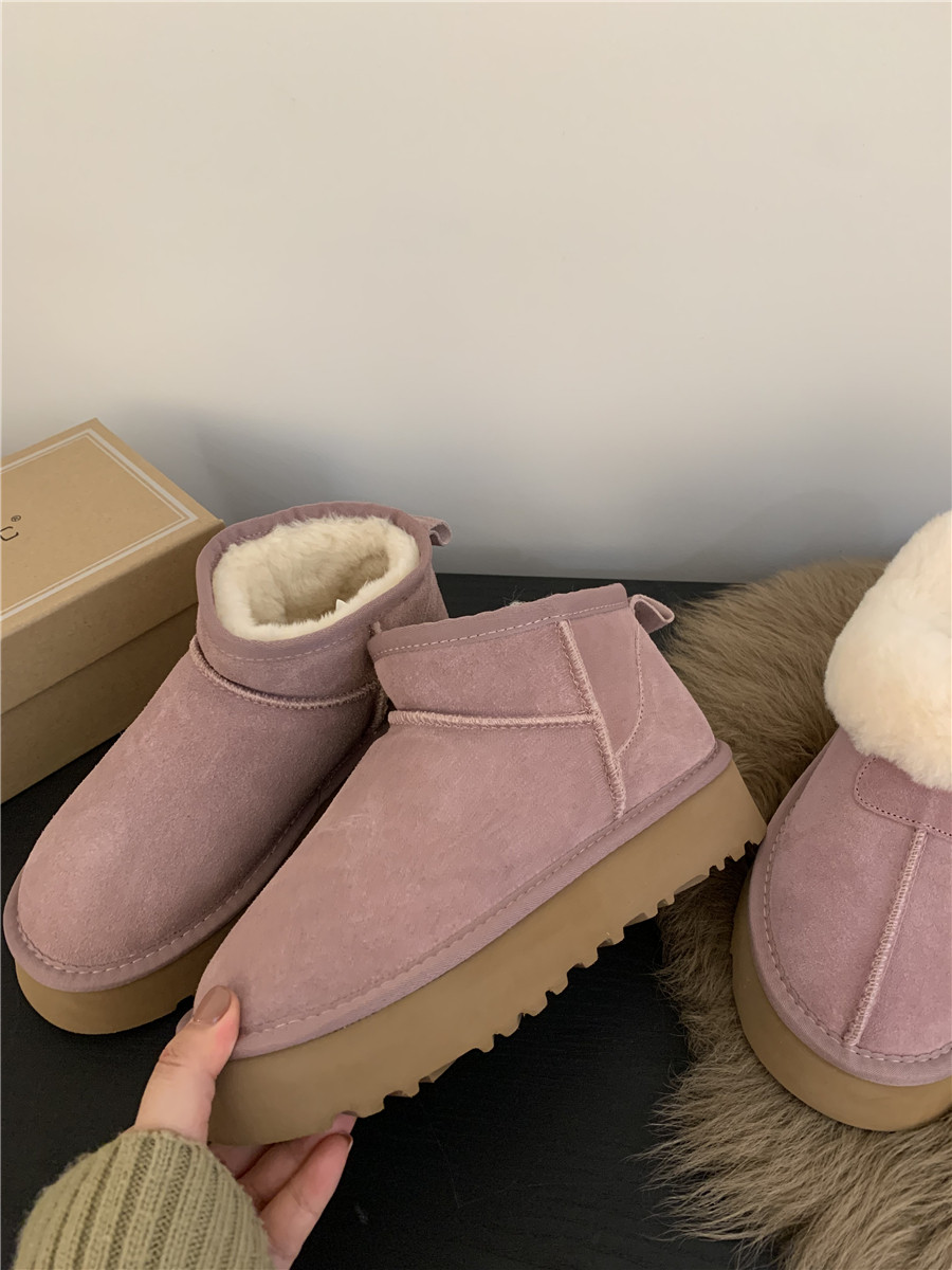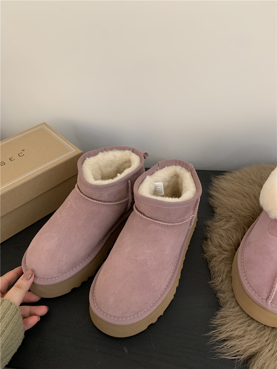 Демисезонные розовые короткие сапоги на платформе, удерживающие тепло тапочки, ботинки