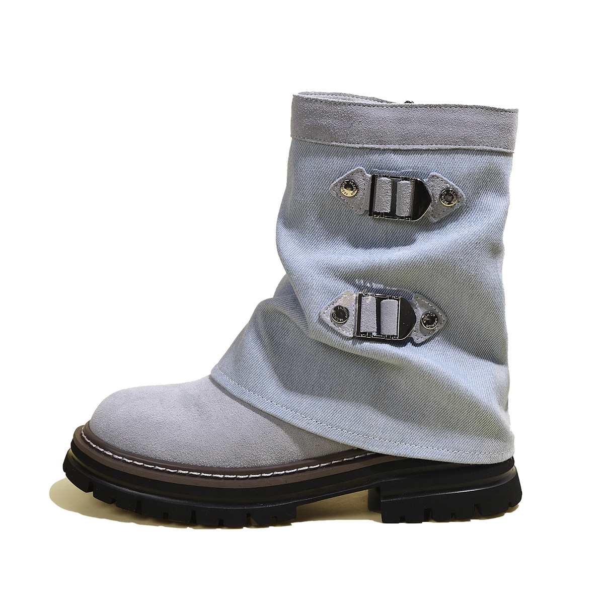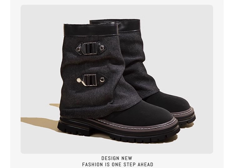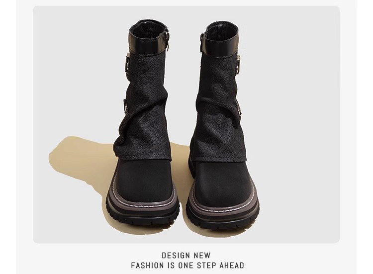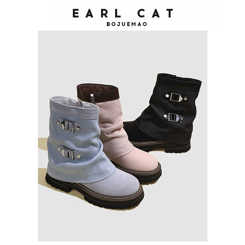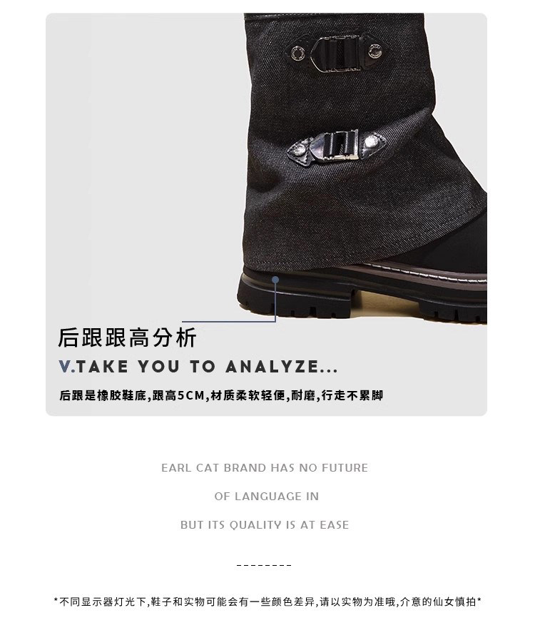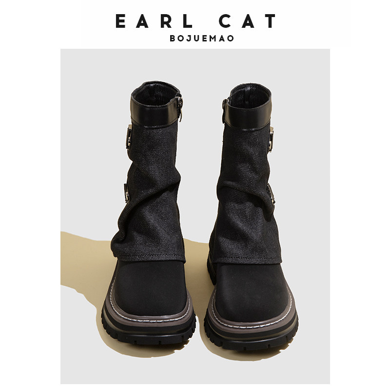 伯爵猫 Модные универсальные джинсовые сапоги на платформе, модель весна/осень 2025 года