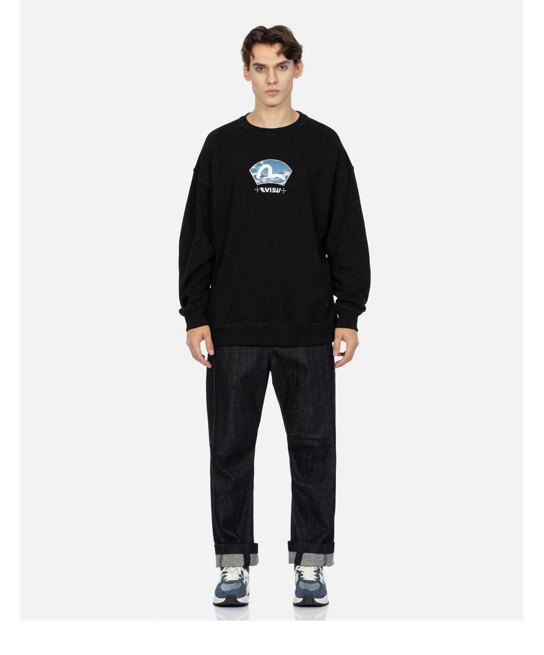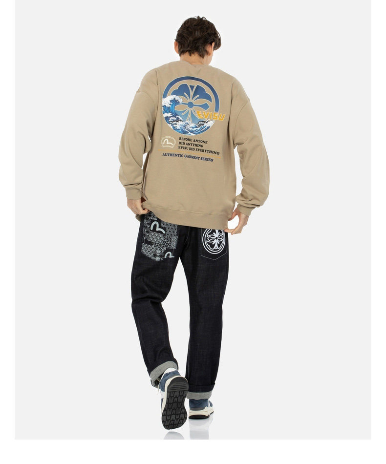Мужская свободная толстовка унисекс EVISU с волнистым узором и принтом чайки 2EAHTM3SW7064LFCT