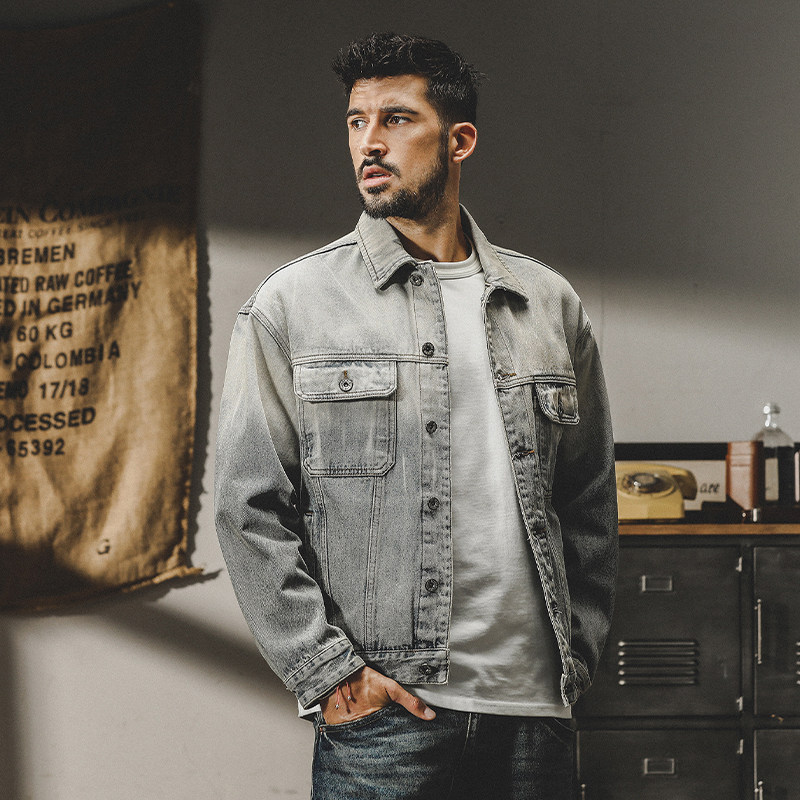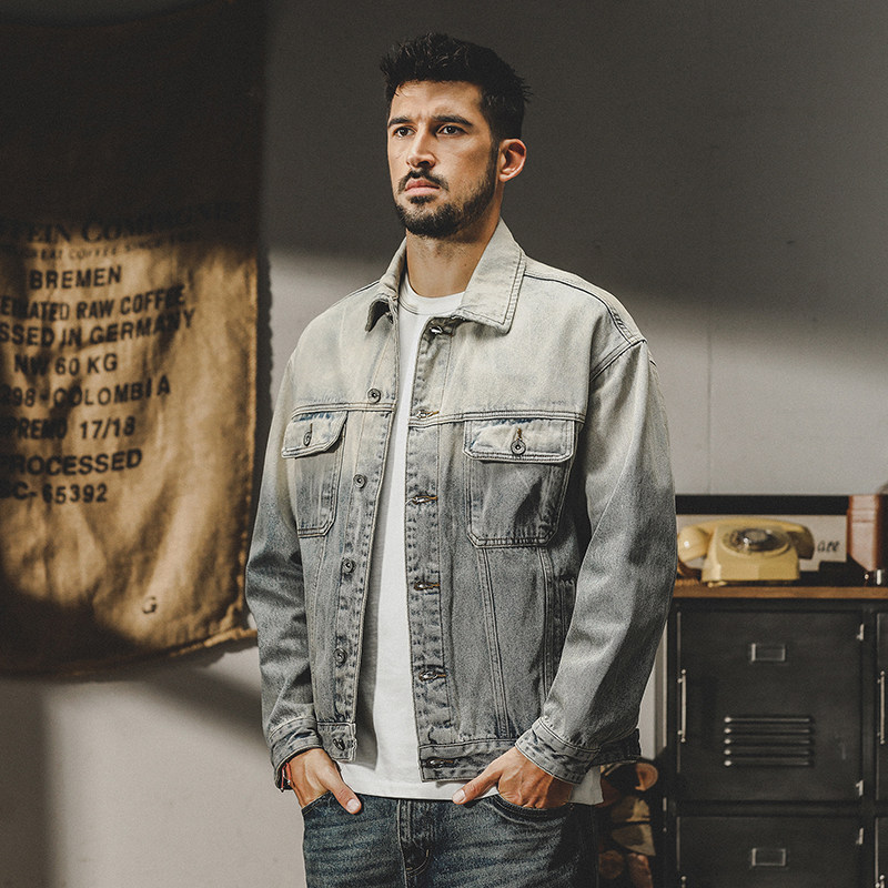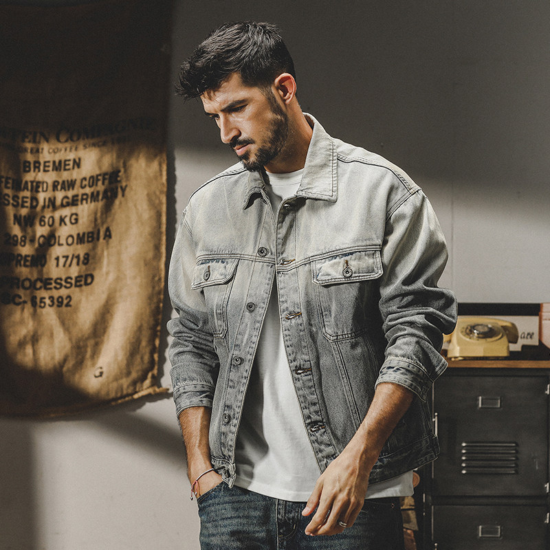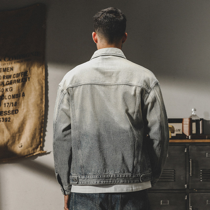 杰雷诺 Ретро джинсовая мужская осенняя трендовая куртка, в американском стиле, градиент, свободный крой