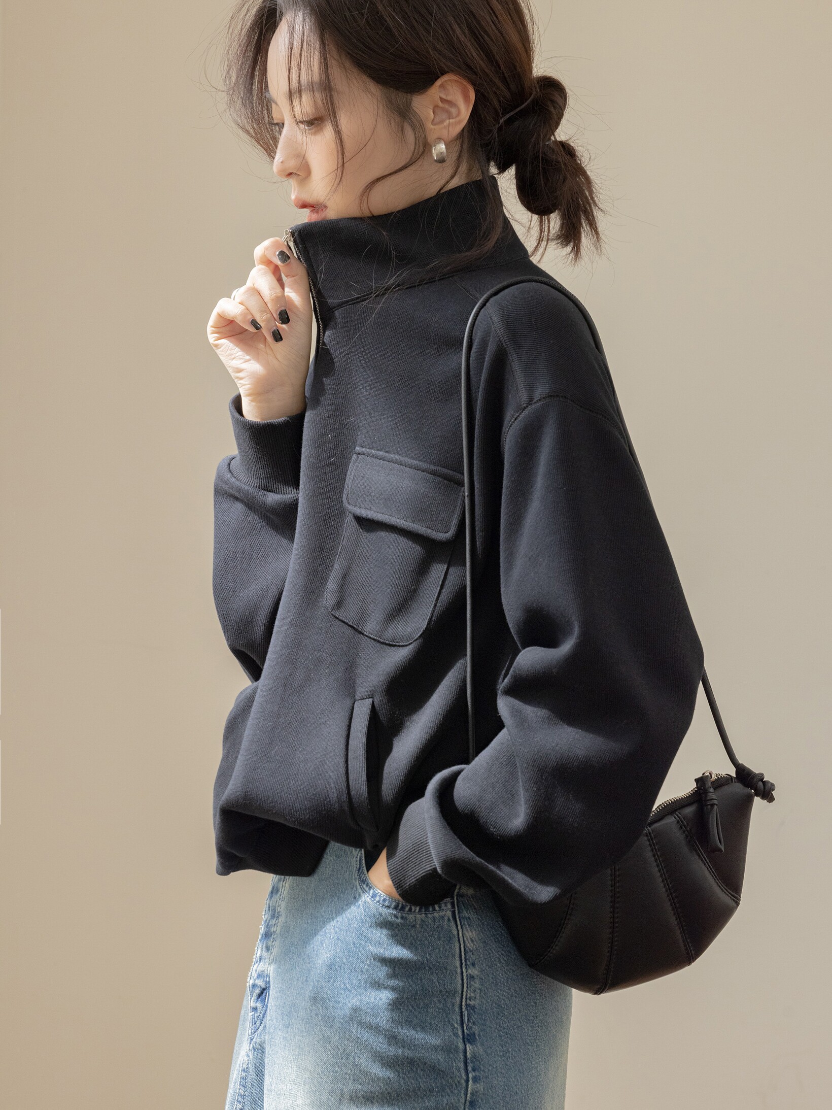 Перевернутый тУдобно и тонко,Половина на молнии воротниц,