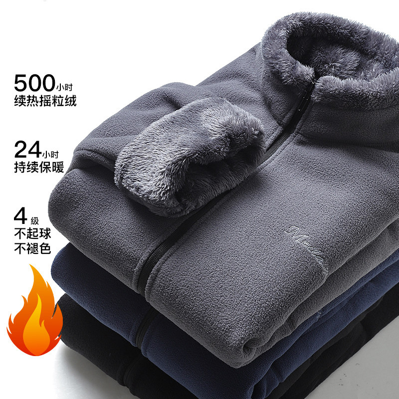 Бархатная мужская демисезонная удерживающая тепло ветрозащитная флисовая куртка, увеличенная толщина, для среднего возраста, свободный крой