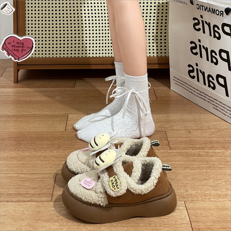 Демисезонная модная обувь на липучке, милые удерживающие тепло сапоги на платформе