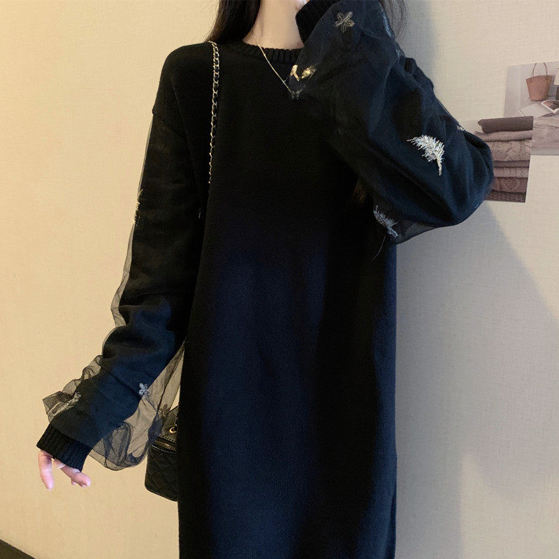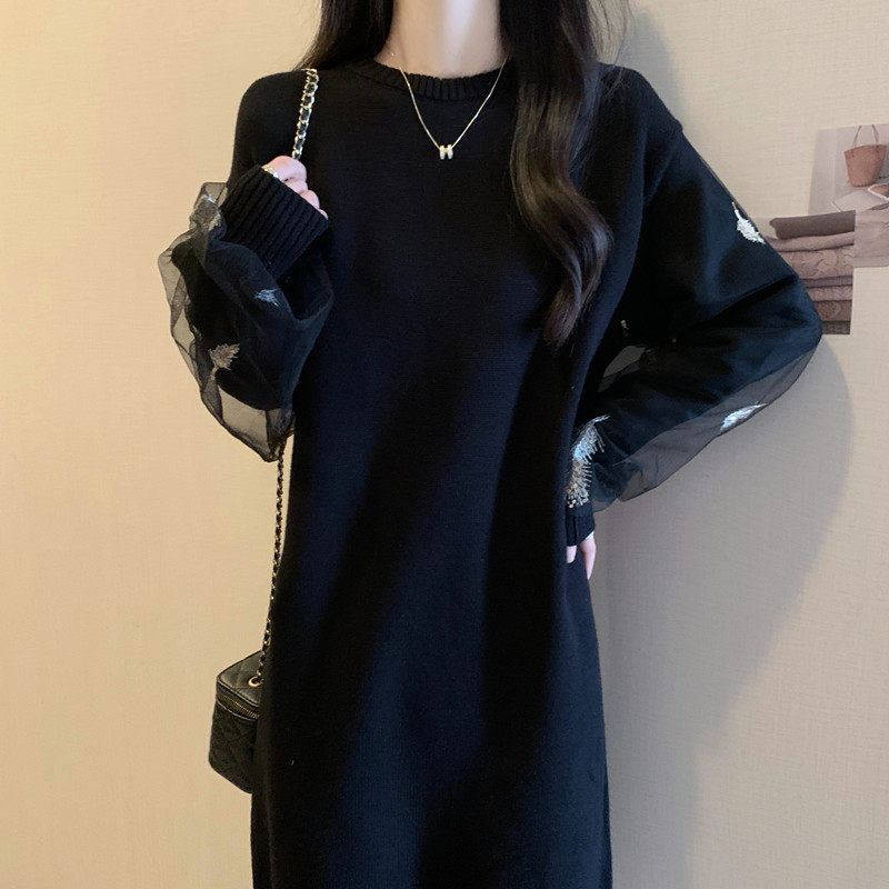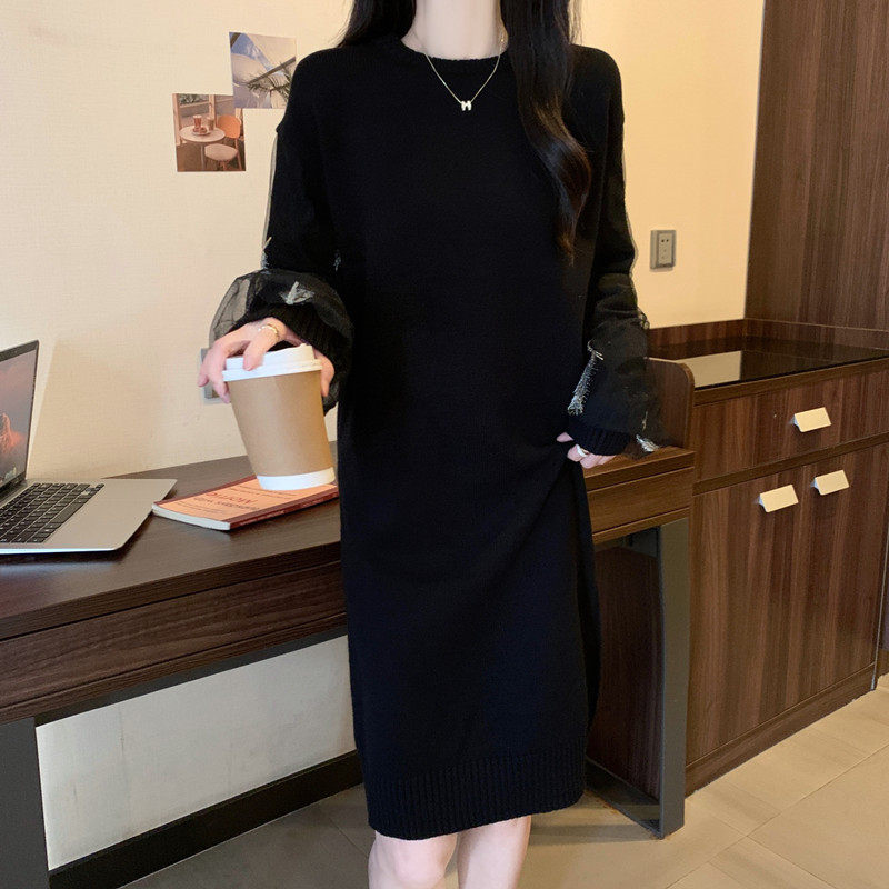 Демисезонное трикотажное платье, юбка, французский стиль, большой размер, свободный прямой крой, изысканный стиль