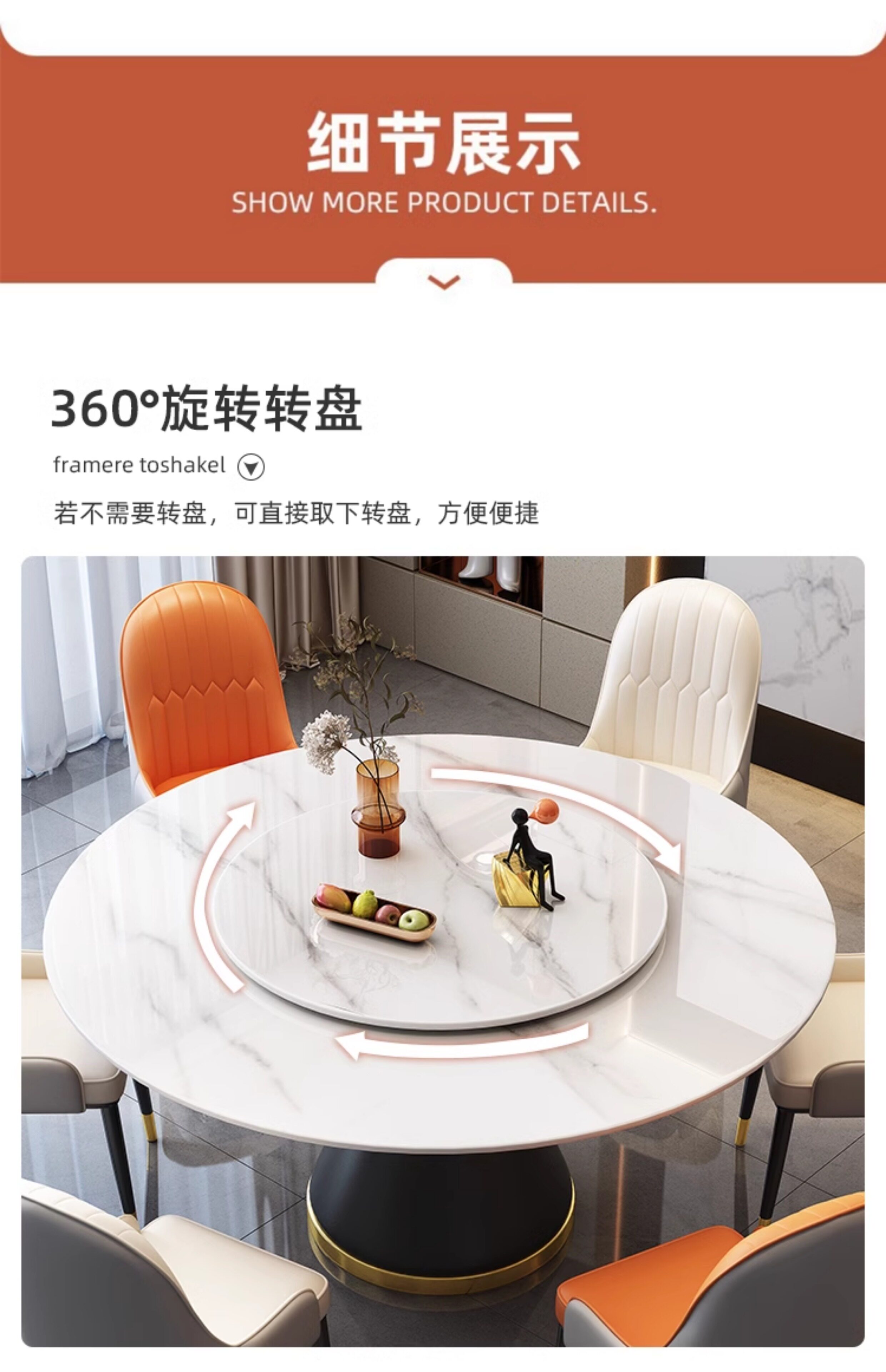 Раунд -рок -плита обеденный стол и стул 2025 Новый мраморный круглый стол.