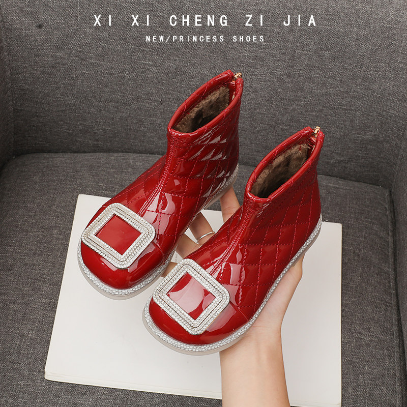 Наряд маленькой принцессы, демисезонные ботинки, утепленные универсальные модные красные короткие сапоги