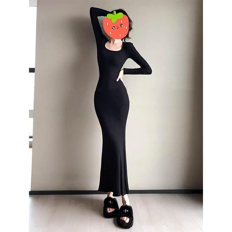 Черная демисезонная юбка, длинный лонгслив, приталенное платье, с акцентом на бедрах, рыбий хвост