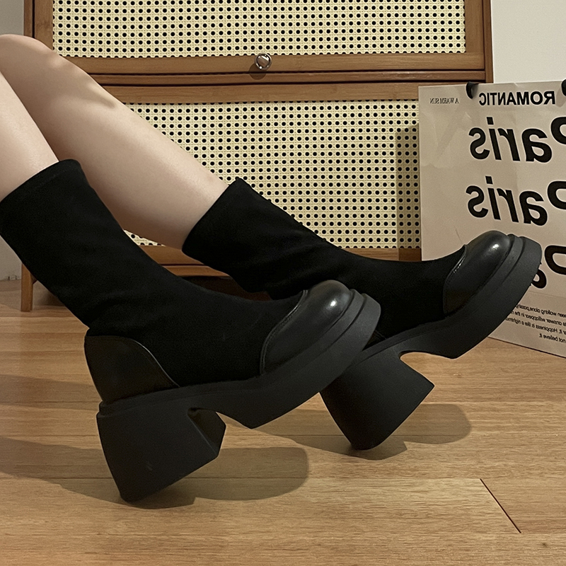 Демисезонные ботинки, высокие эластичные сапоги, подходит для подростков, изысканный стиль