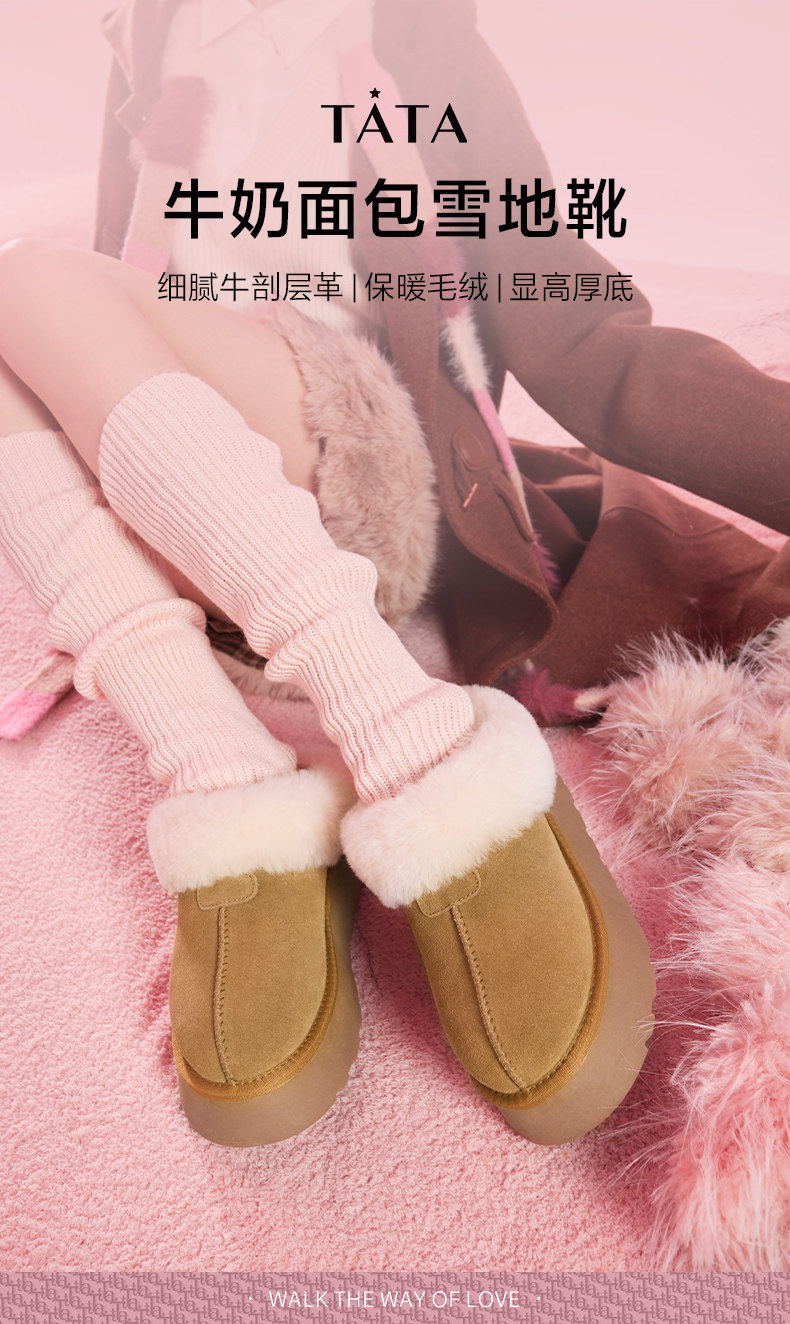 Tata зимние сапоги с молоком и лапшой, женские сапоги, зимние плюшевые хлопковые туфли на толстой подошве, новинка WDX17DM3