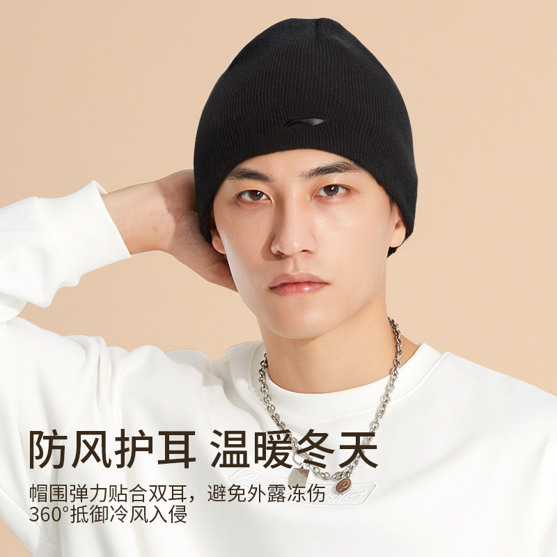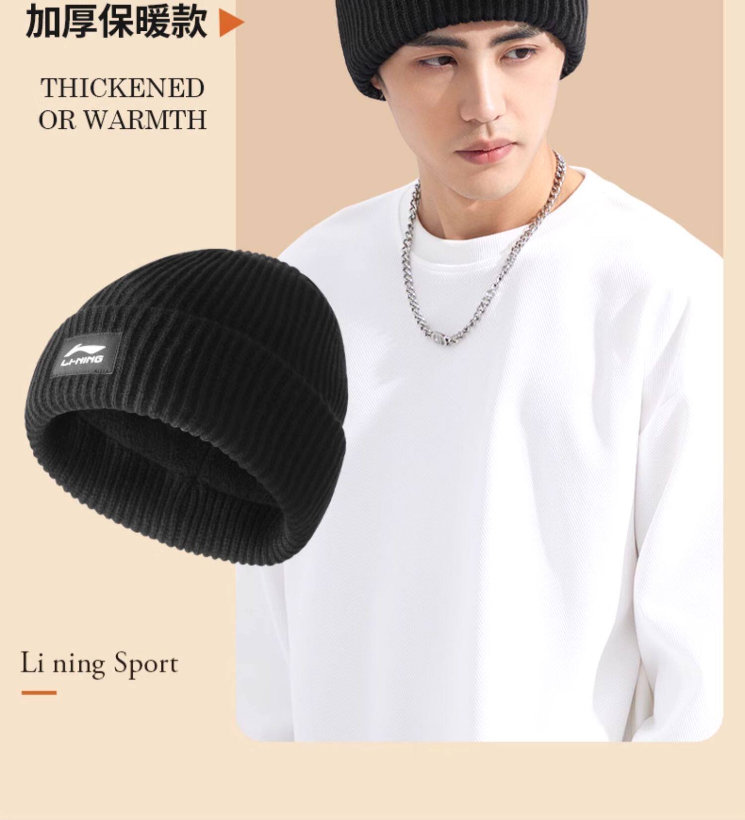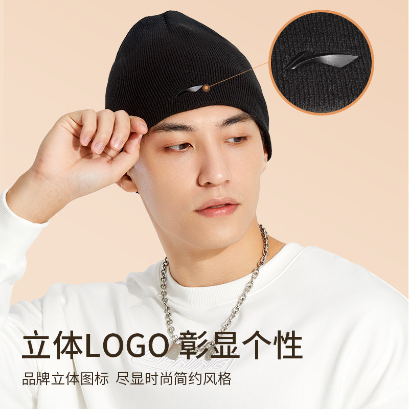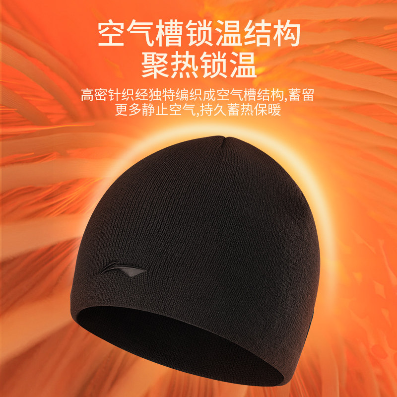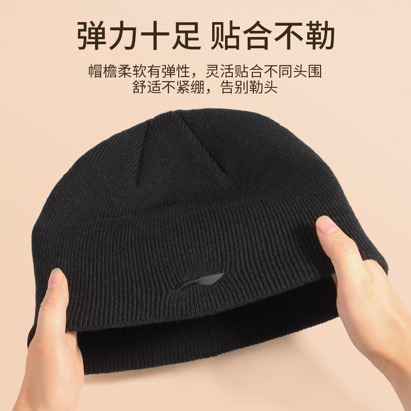 Li Ning, зимняя лыжная шерстяная бархатная удерживающая тепло спортивная мужская вязаная шапка, для бега