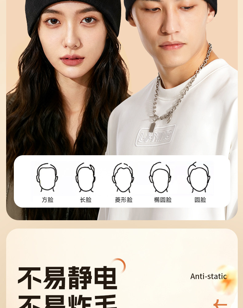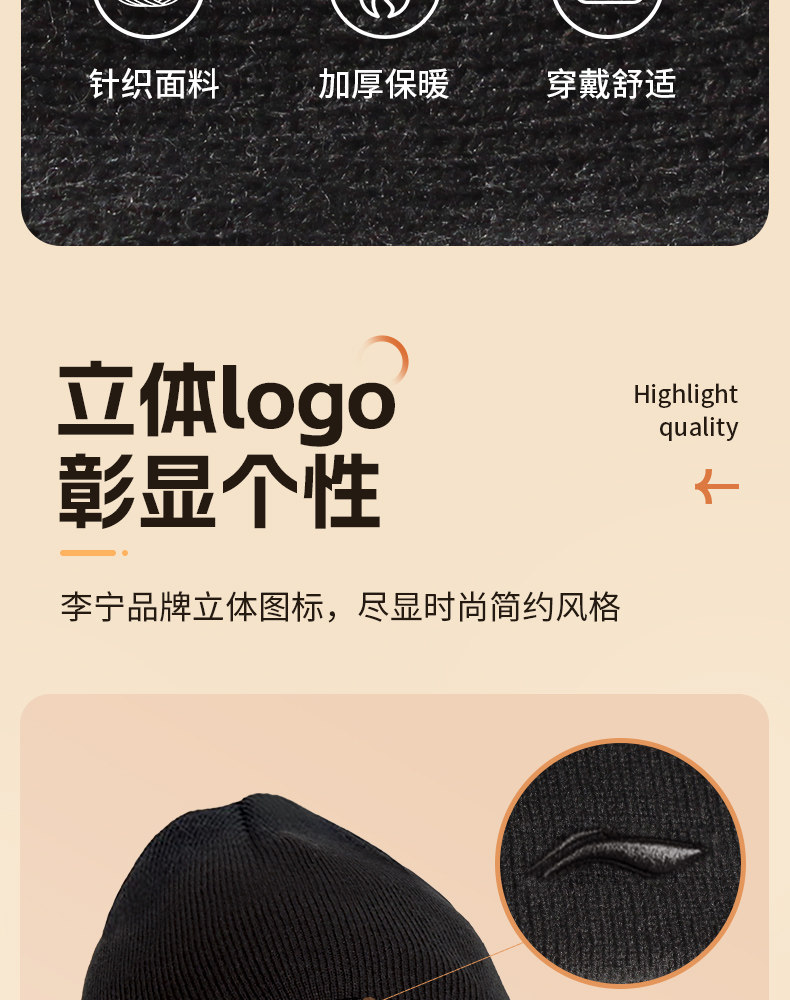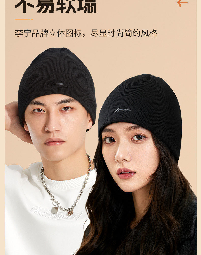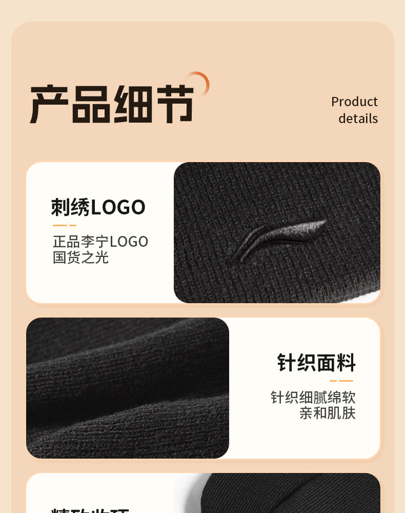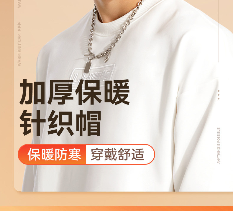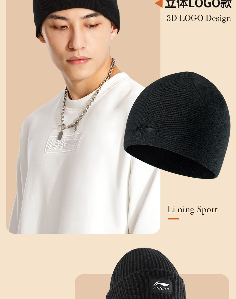 Li Ning, зимняя лыжная шерстяная бархатная удерживающая тепло спортивная мужская вязаная шапка, для бега