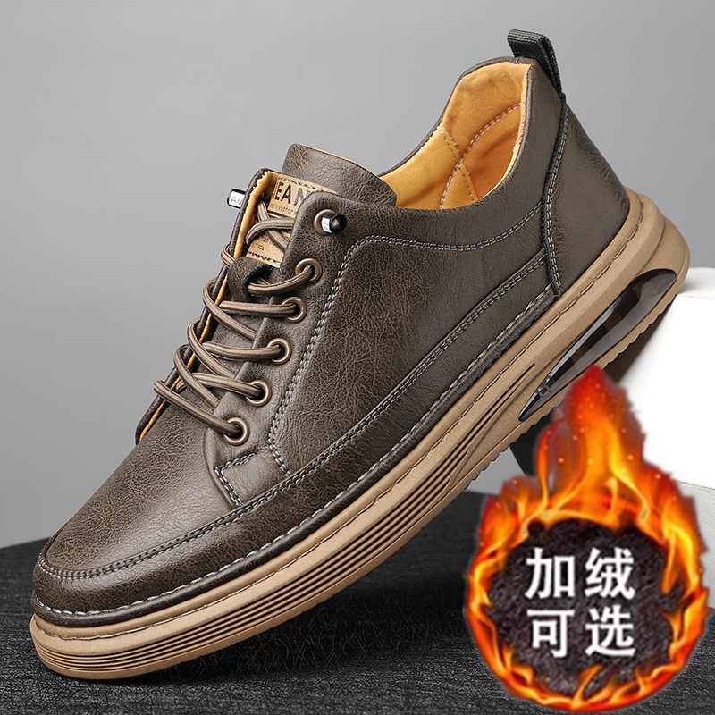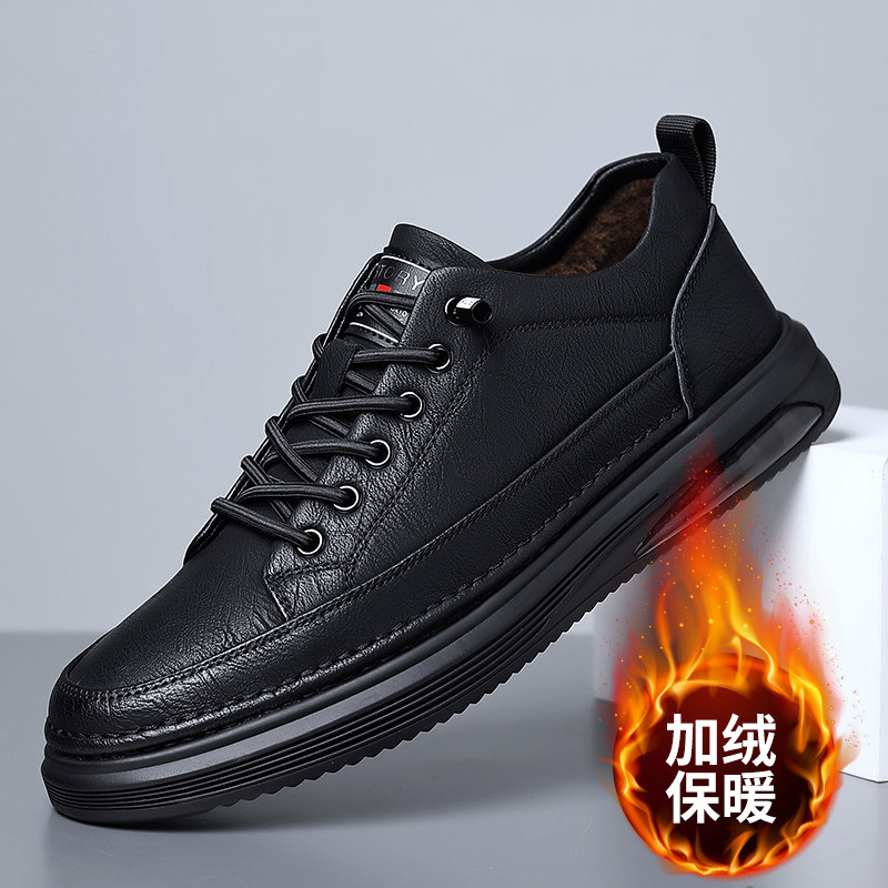 Утепленная обувь, мужские удерживающие тепло туфли, универсальные трендовые кроссовки для отдыха для кожаной обуви, коллекция 2023, из натуральной кожи