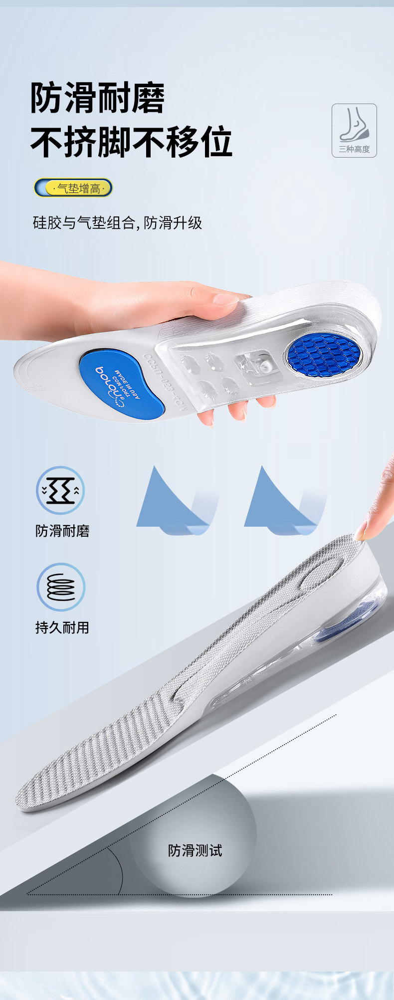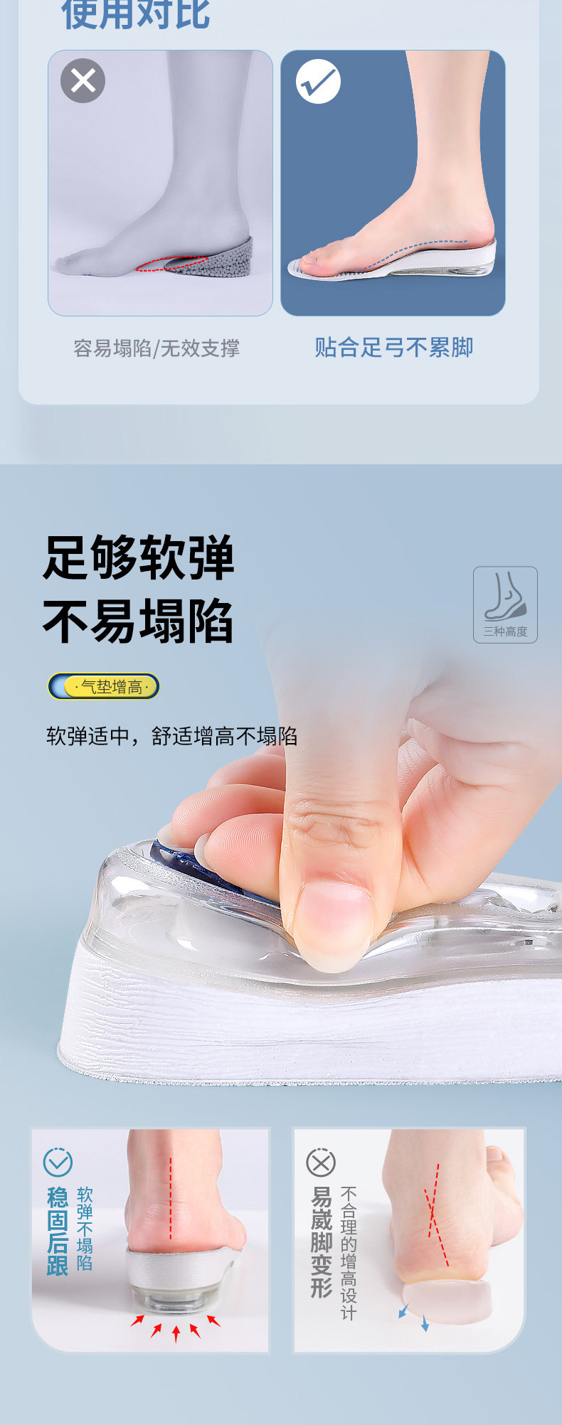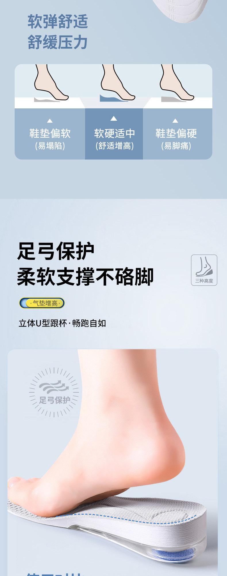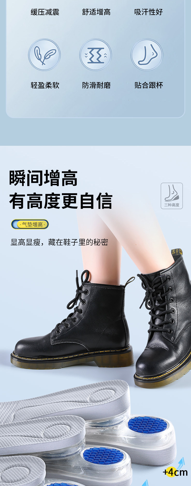 Спортивный кушон, мужские невидимые стельки для увеличения роста