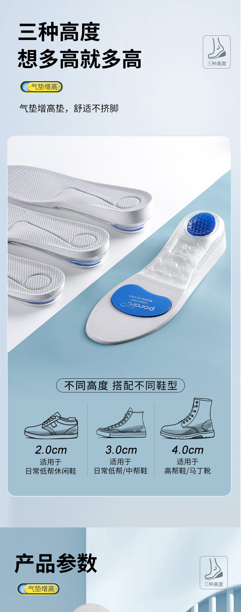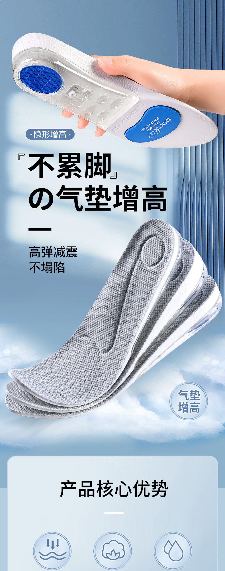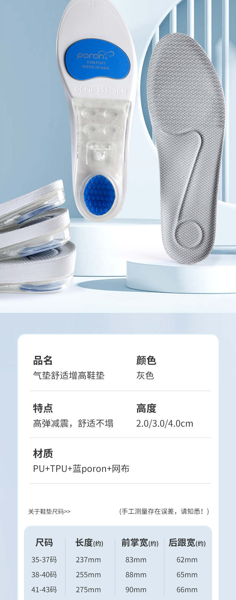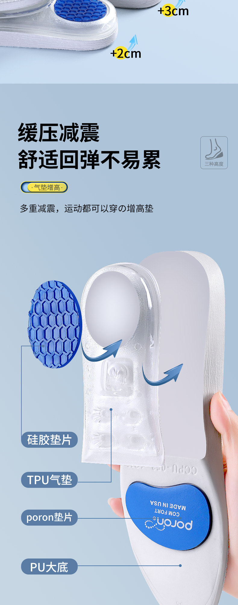 Спортивный кушон, мужские невидимые стельки для увеличения роста
