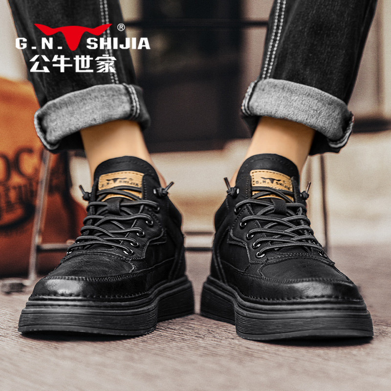 Высокие черные кроссовки для отдыха для кожаной обуви, осенние, из натуральной кожи, мягкая подошва
