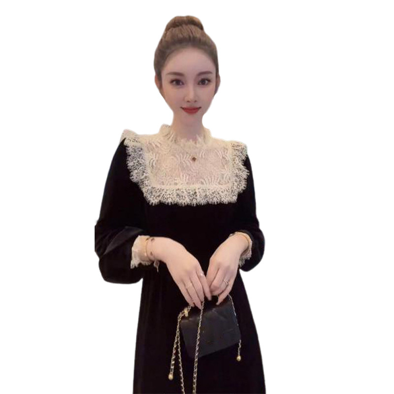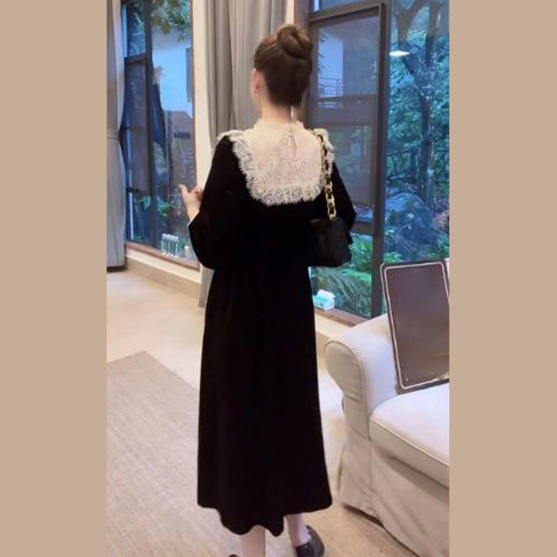 Черный лонгслив, осеннее платье, бархатная длинная юбка, французский стиль, премиум класс
