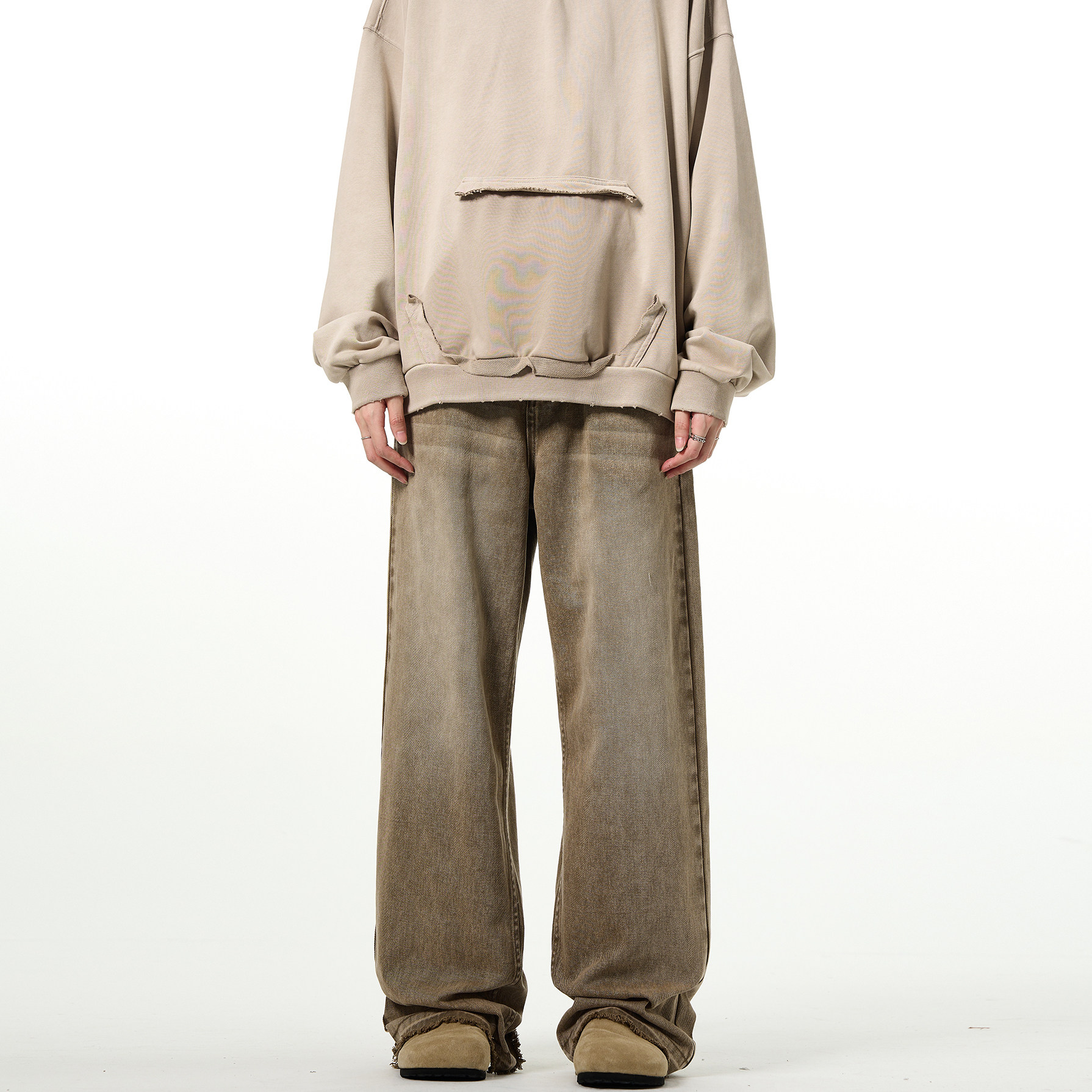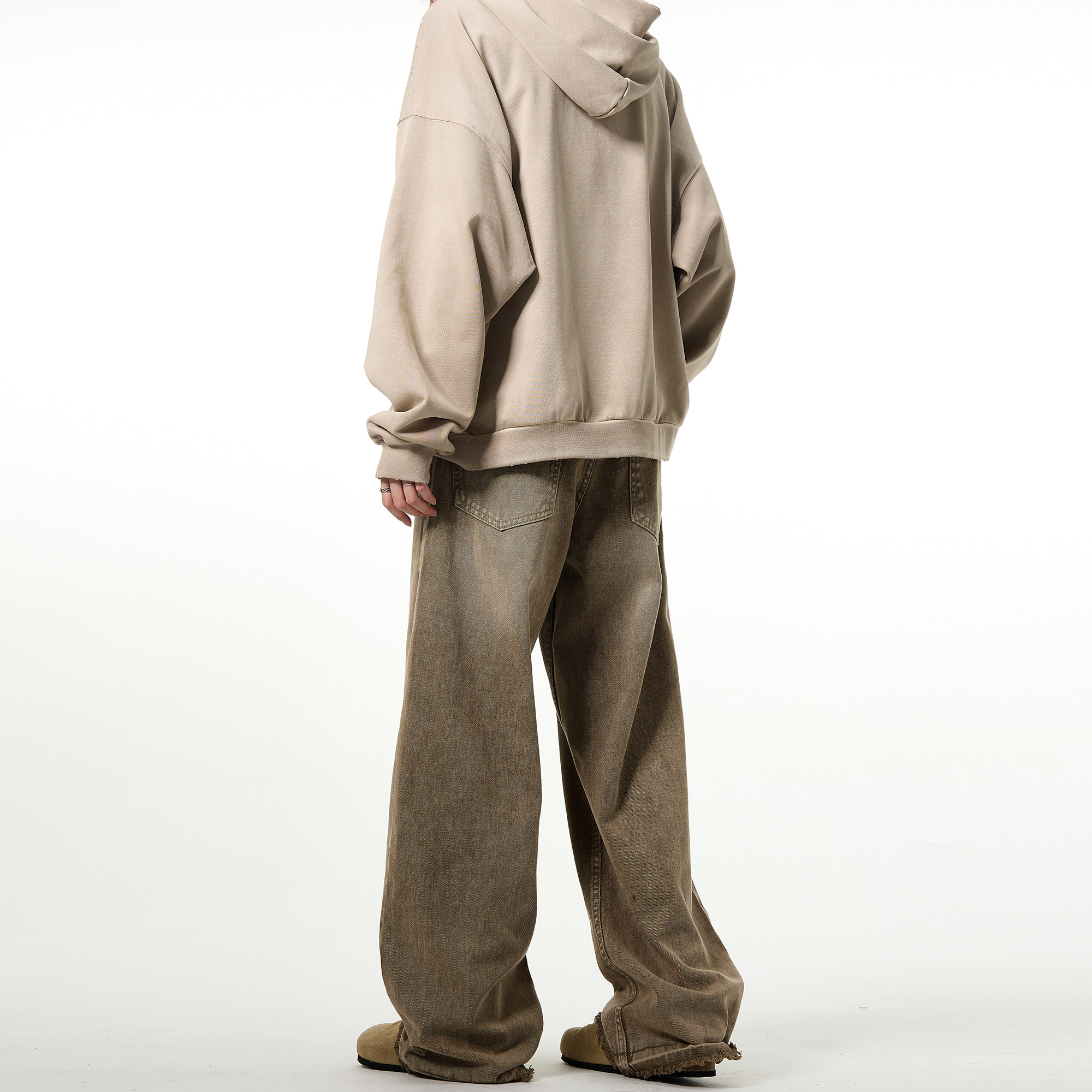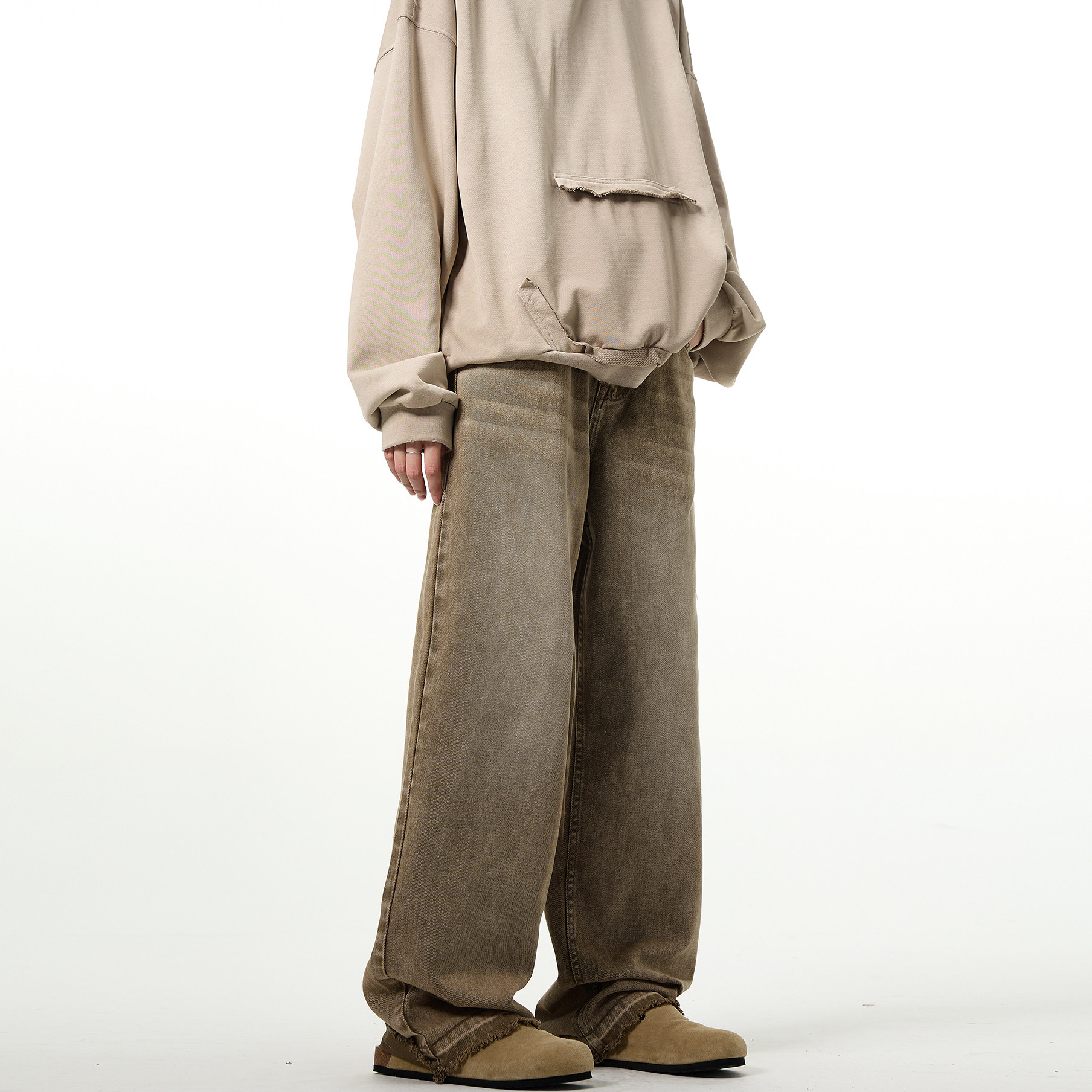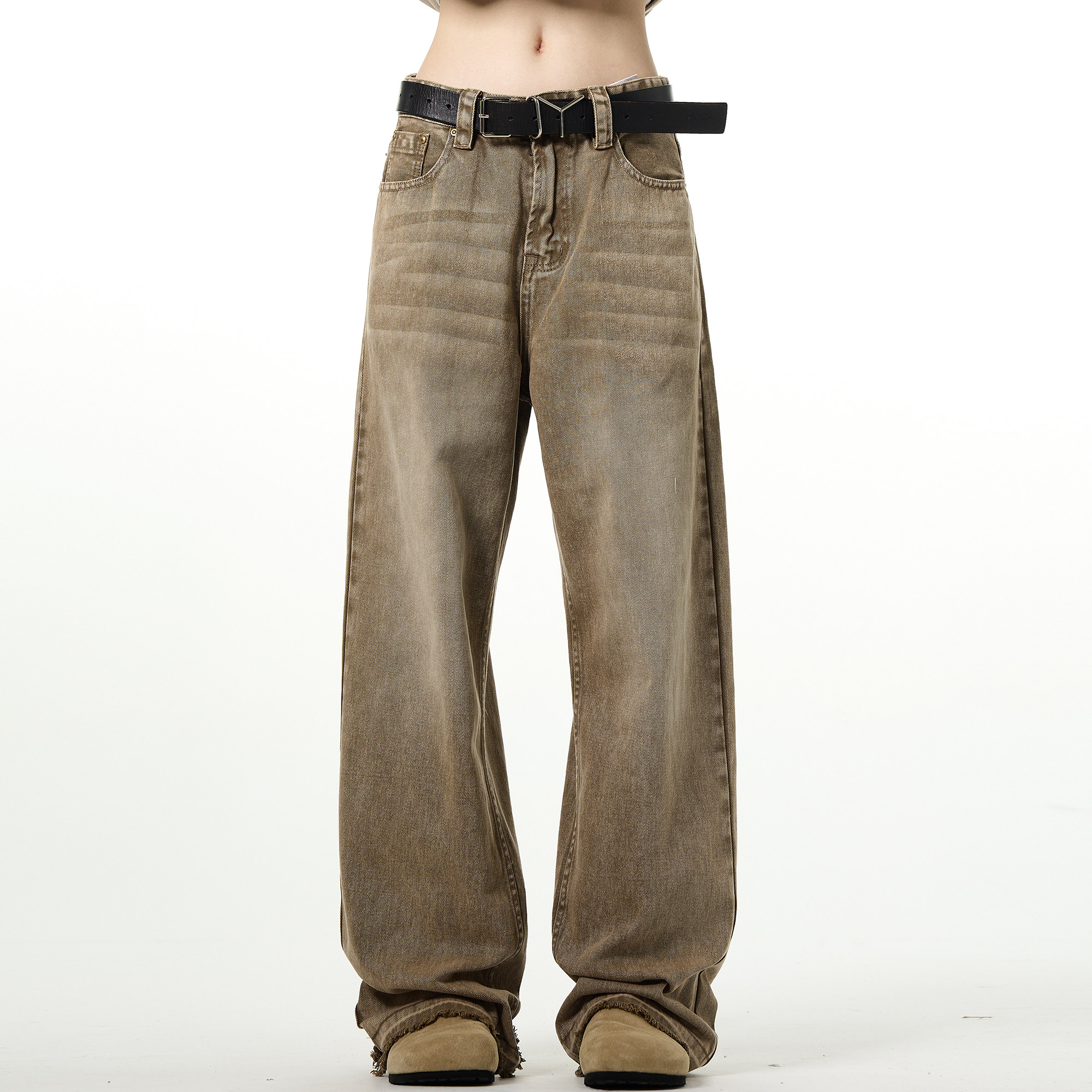 MADWITCH Прямые джинсы в стиле ретро в стиле high street, винтажные брюки Maillard с необработанными краями и бахромой