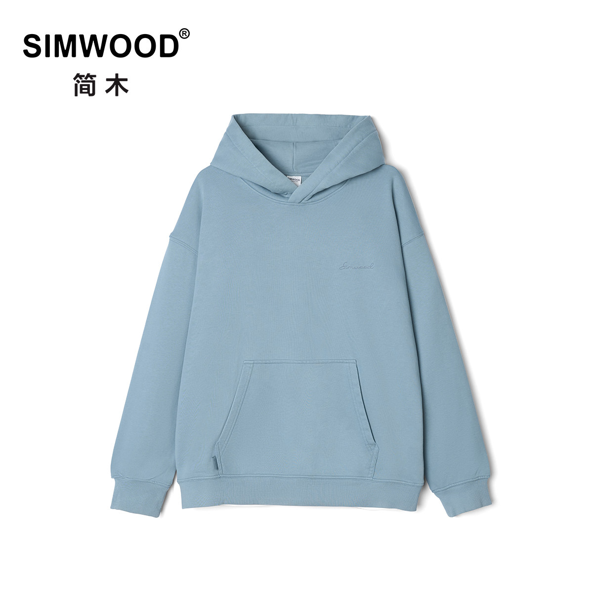 Simwood Мужская одежда Jianmu [свободная версия] 450 г карбоновая толстовка с капюшоном и вышивкой из плотного хлопка для мужчин