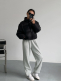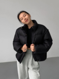 Черный демисезонный пуховик, бархатная куртка, оверсайз, утиный пух