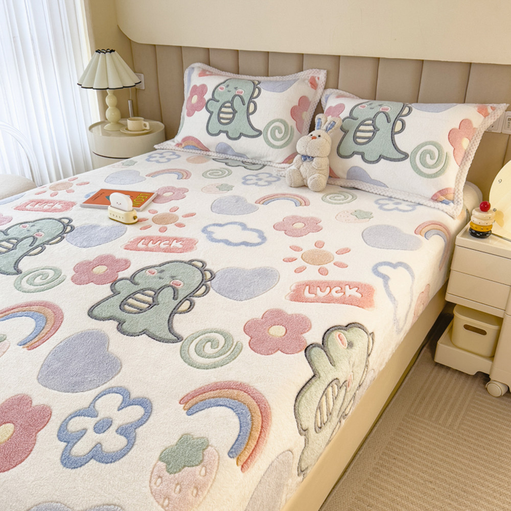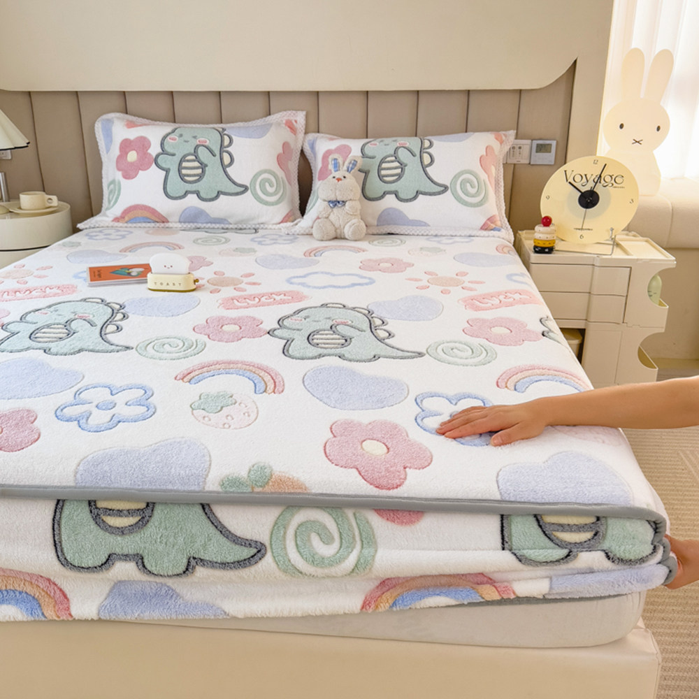 Простыня на флисовой подкладке, коралловый динозавр, зимнее покрывало, нескользящий детский матрас, накладки, со снежинками, увеличенная толщина