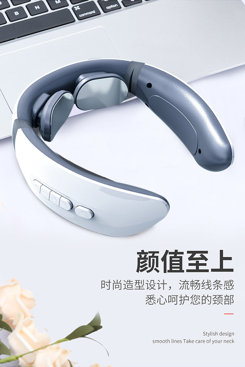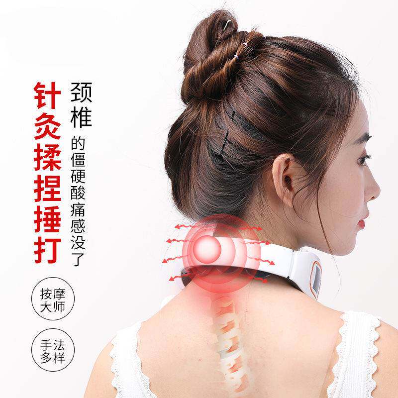 Шейный позвоночник с тремя головными массажными приборами. Электрический интеллектуальный импульсный пульс электромагнитный сетел