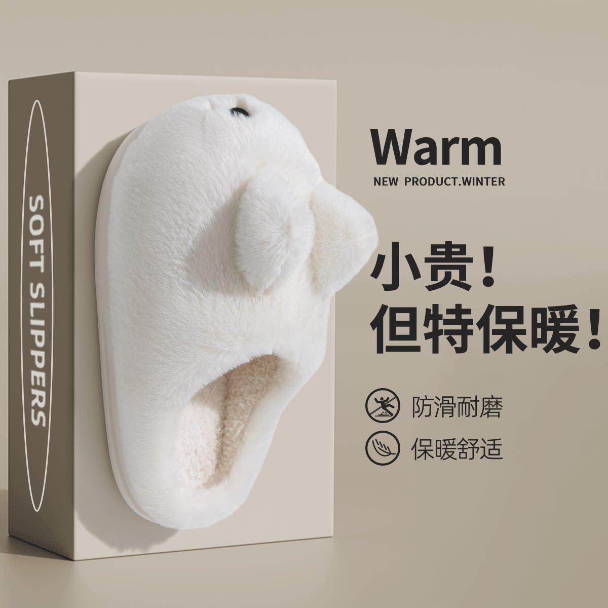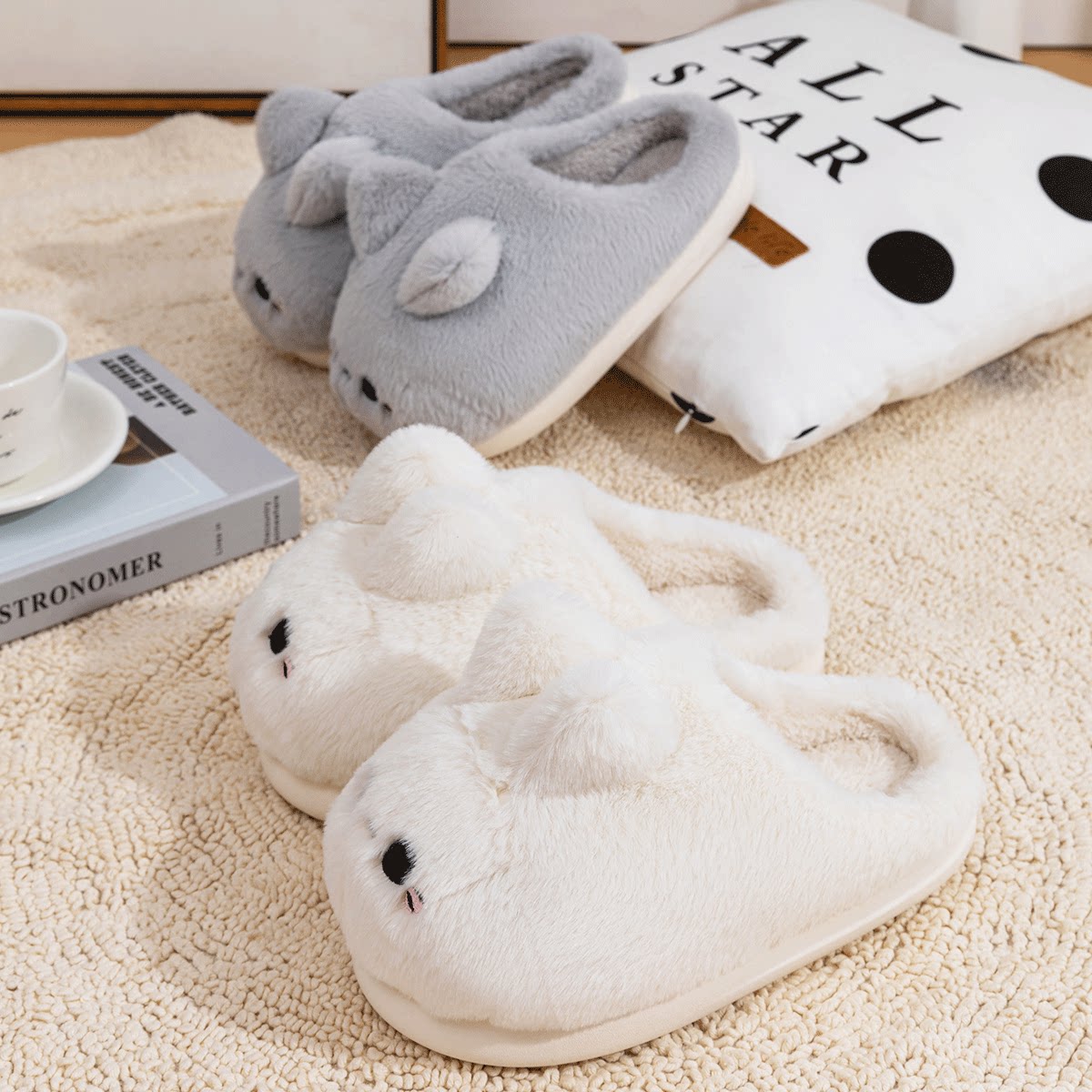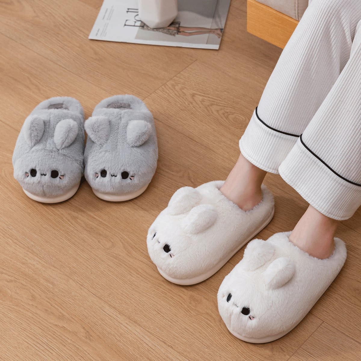 Демисезонные тапочки, обувь, милый плюшевый удерживающий тепло зимний кролик, коллекция 2023