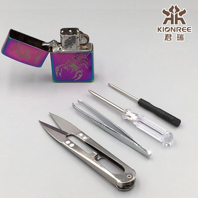 Зажигалка с аксессуарами на керосине, набор инструментов, ножницы, пинцет, отвертка