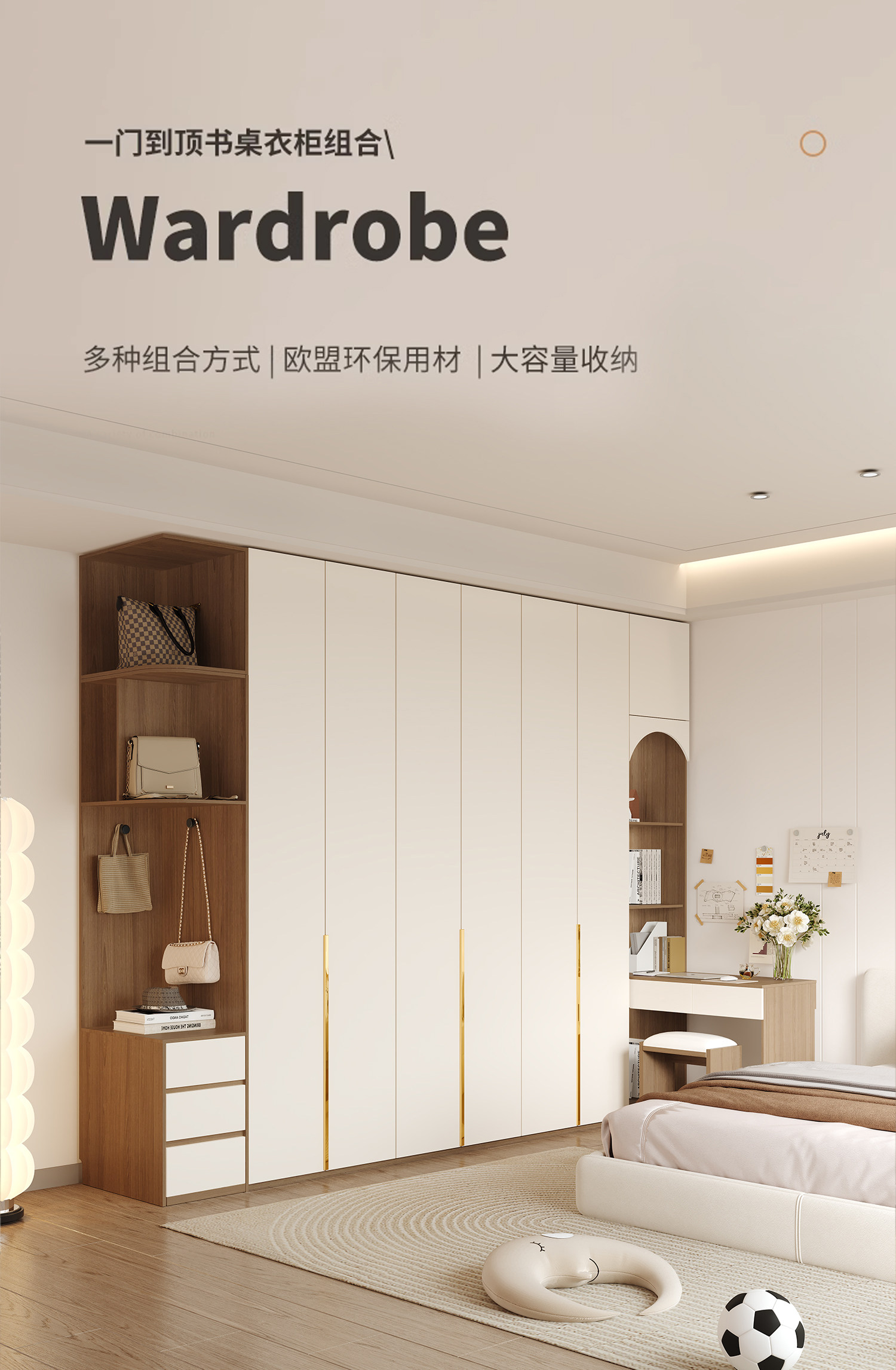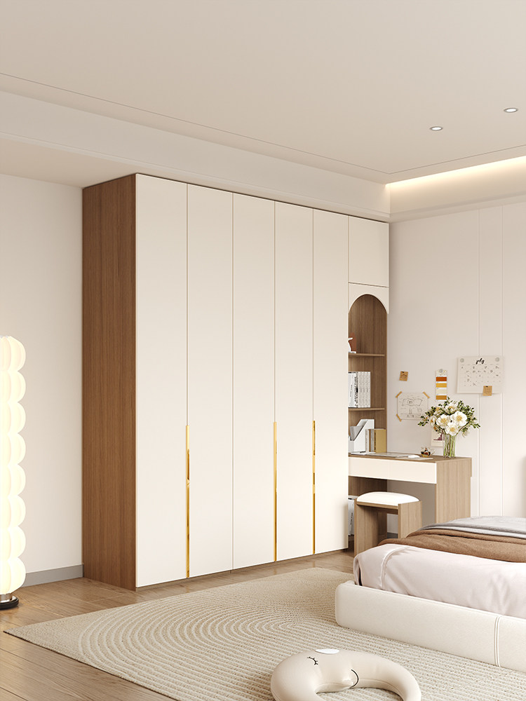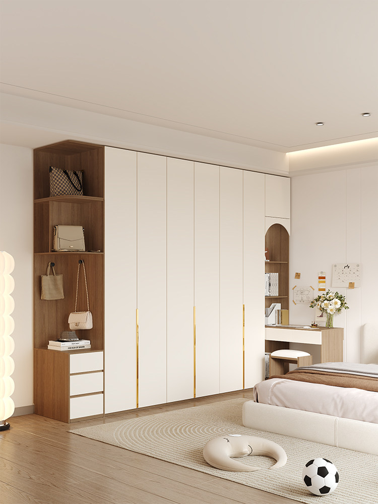 Дверь в верхний деревянный гардероб домашний спальня главная спальня с столом с столом простым и современным открытым дверным гардеробом