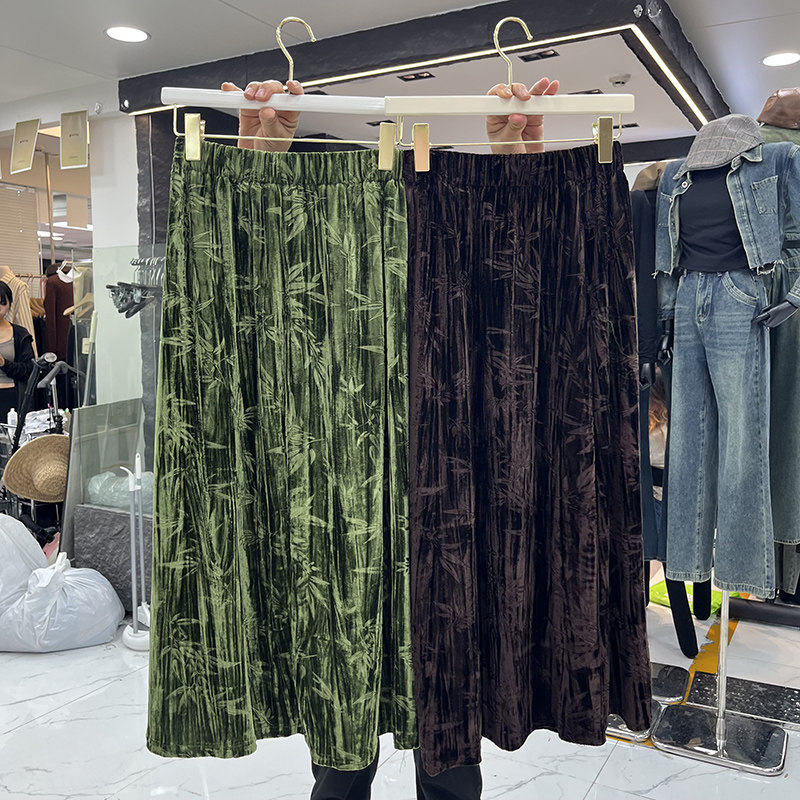 Приталенная длинная ретро бархатная осенняя длинная юбка, тонкое плетение, А-силуэт