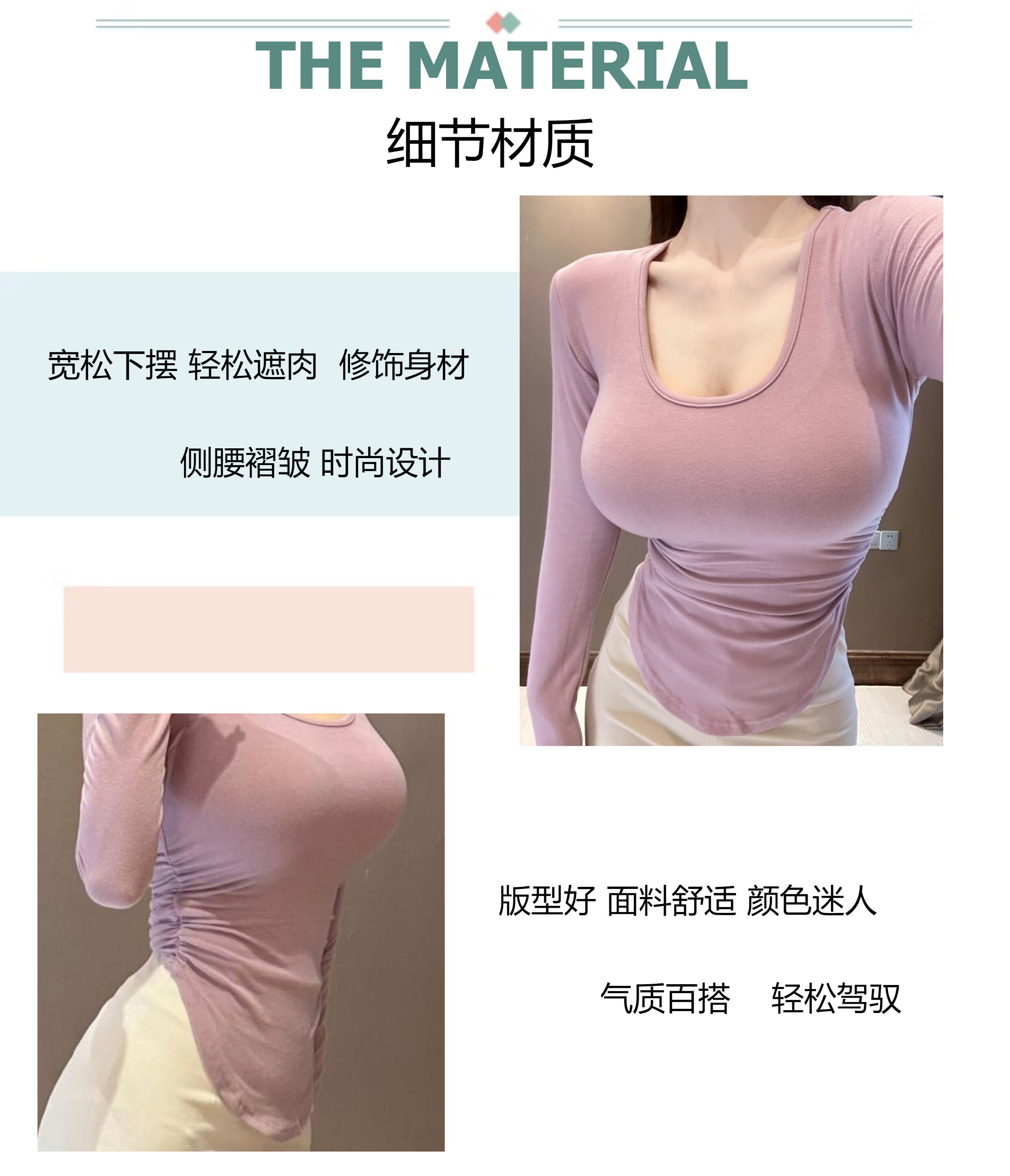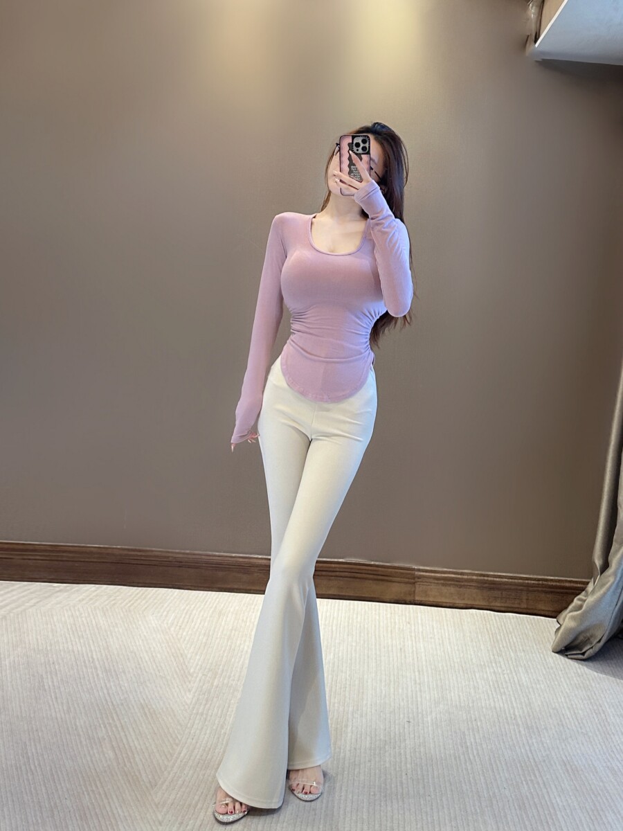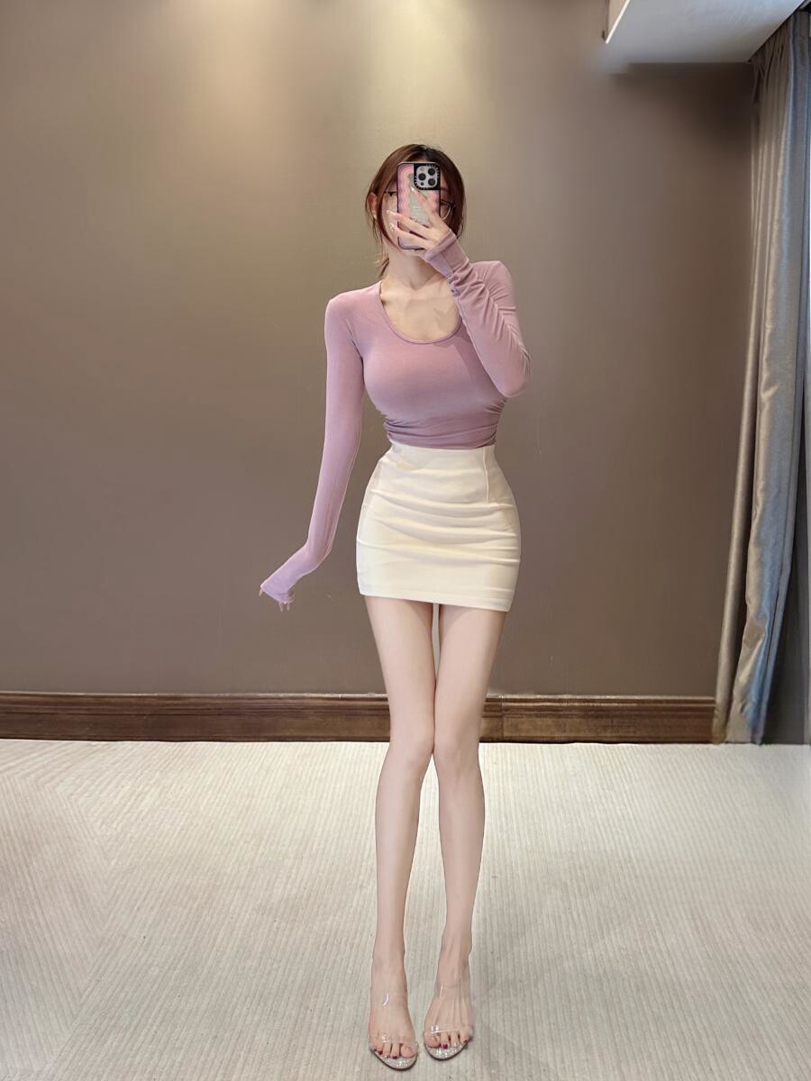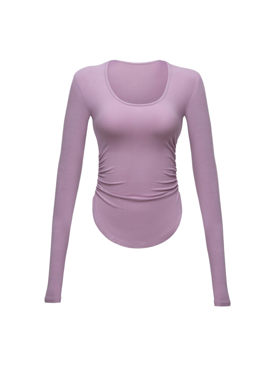 Сируи чистый и похотливый топ с большими грудью, мягкая облако круглая шея, длинные рукава, похудение и универсальная базовая футболка