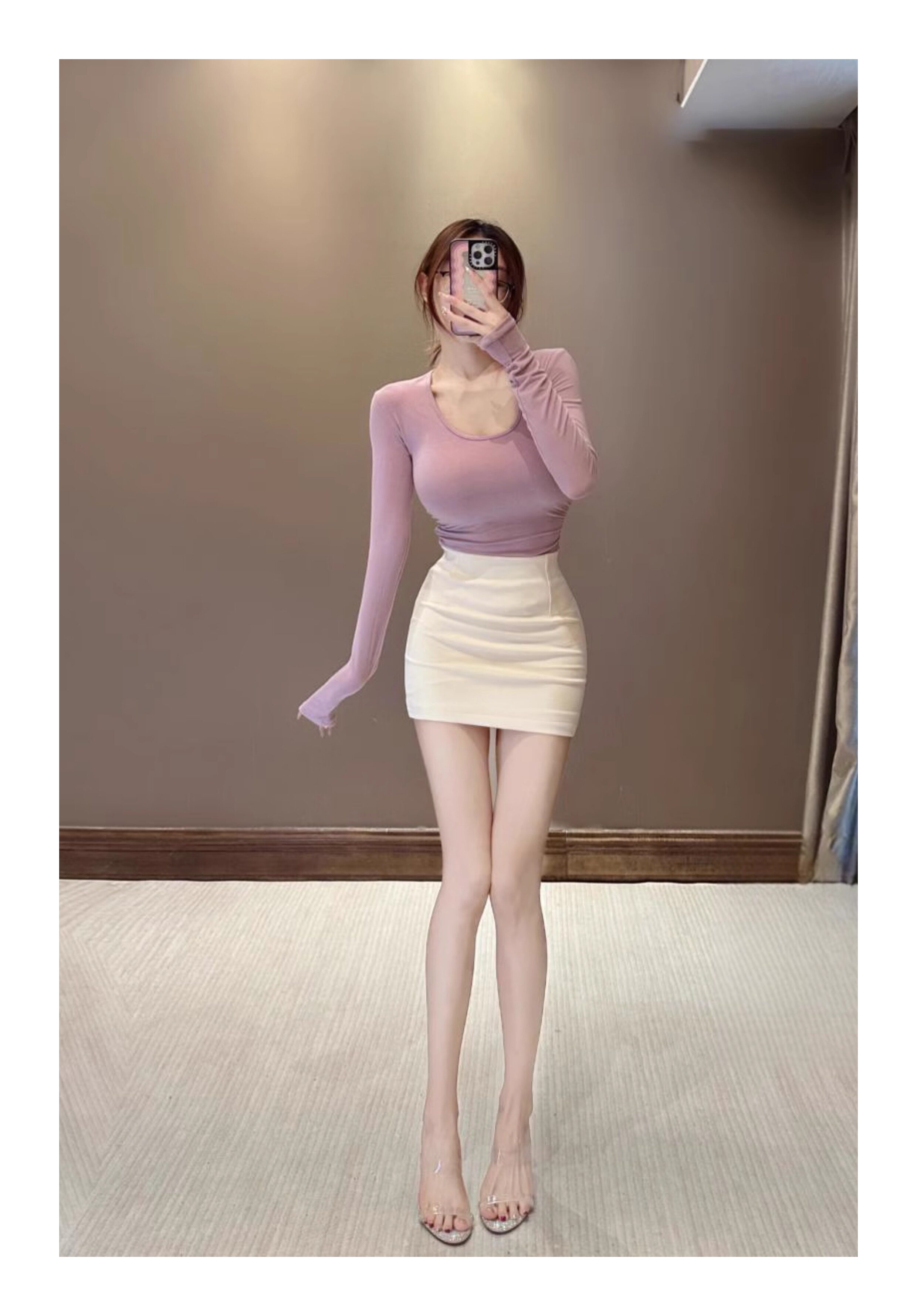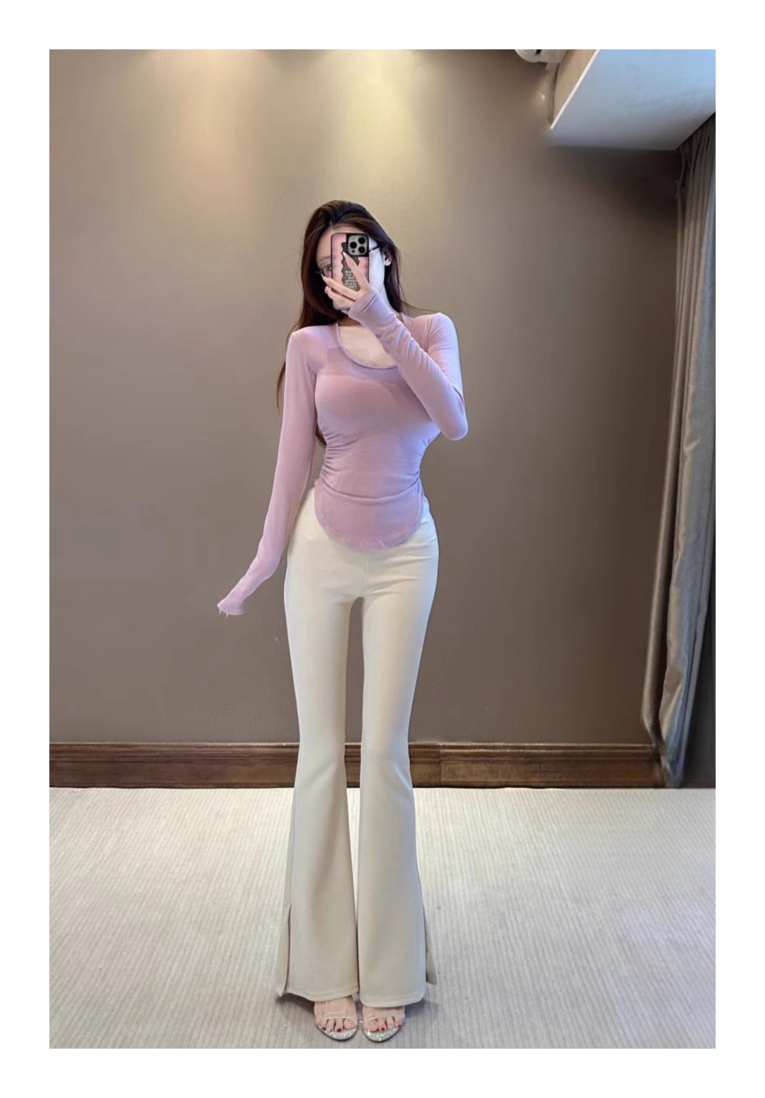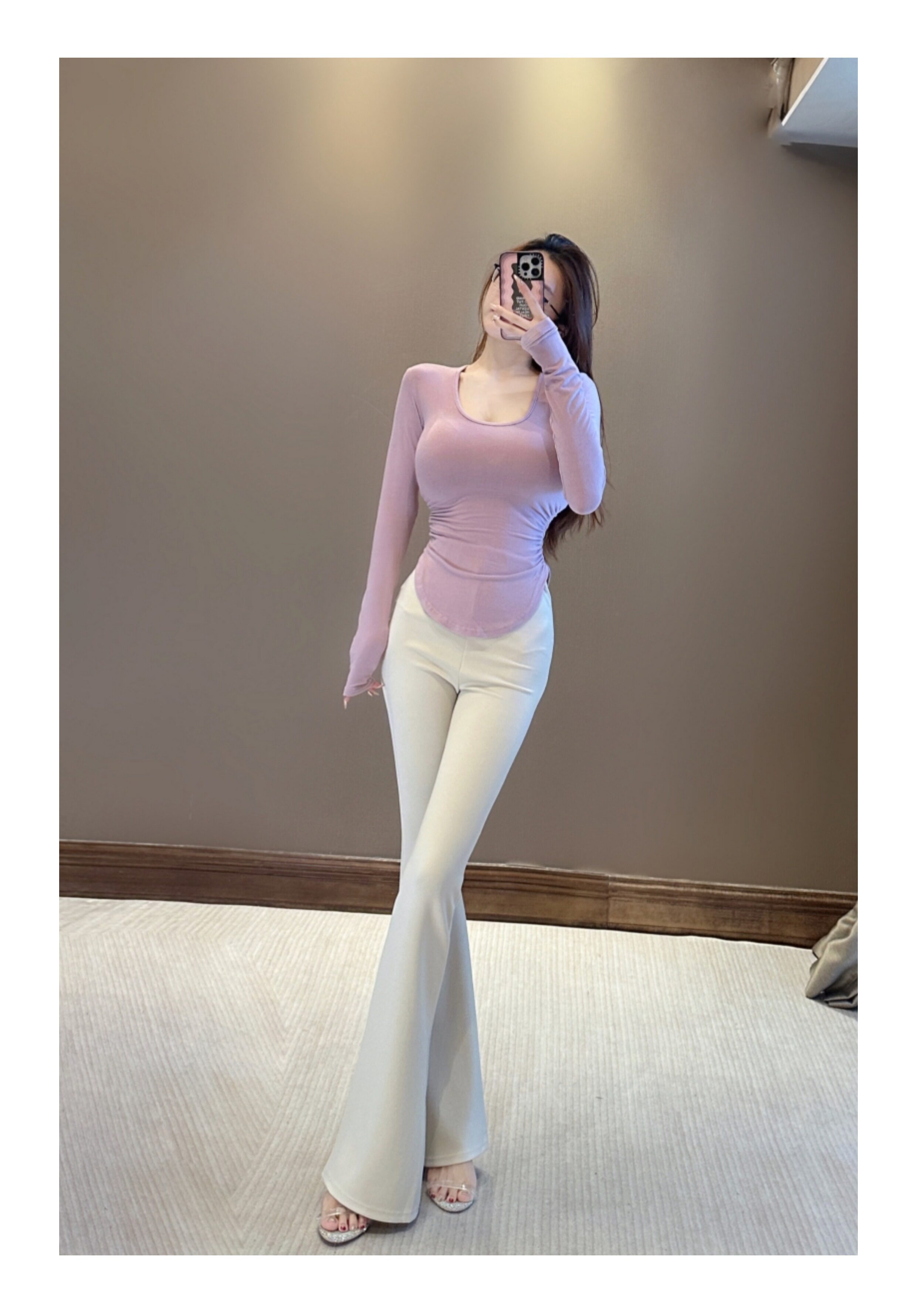 Сируи чистый и похотливый топ с большими грудью, мягкая облако круглая шея, длинные рукава, похудение и универсальная базовая футболка