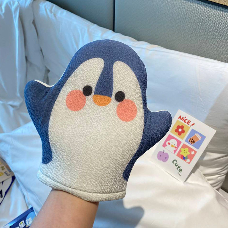 Симпатичные пингвины потирают перчатки, потирая грязь, не причиняет ущерба для ванны, купальный мультиплет