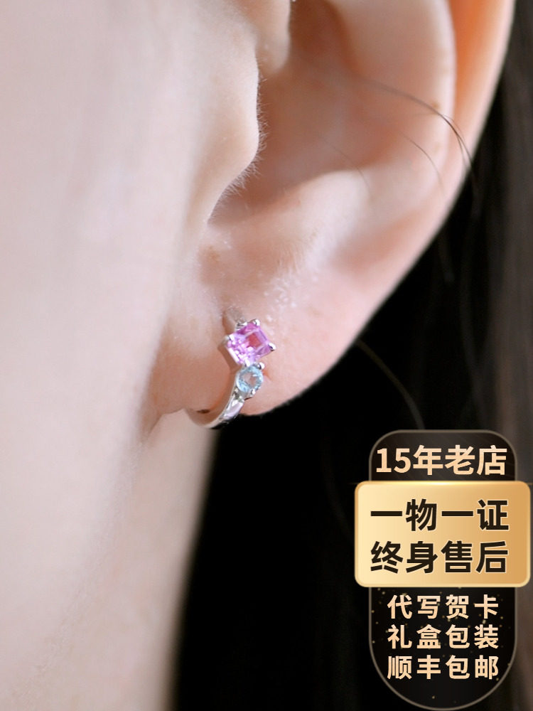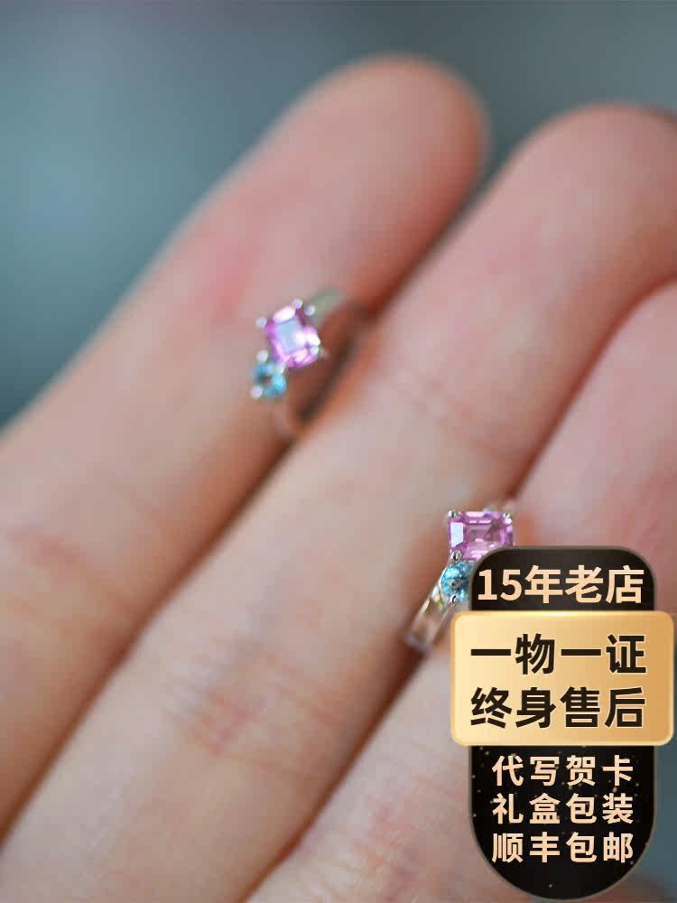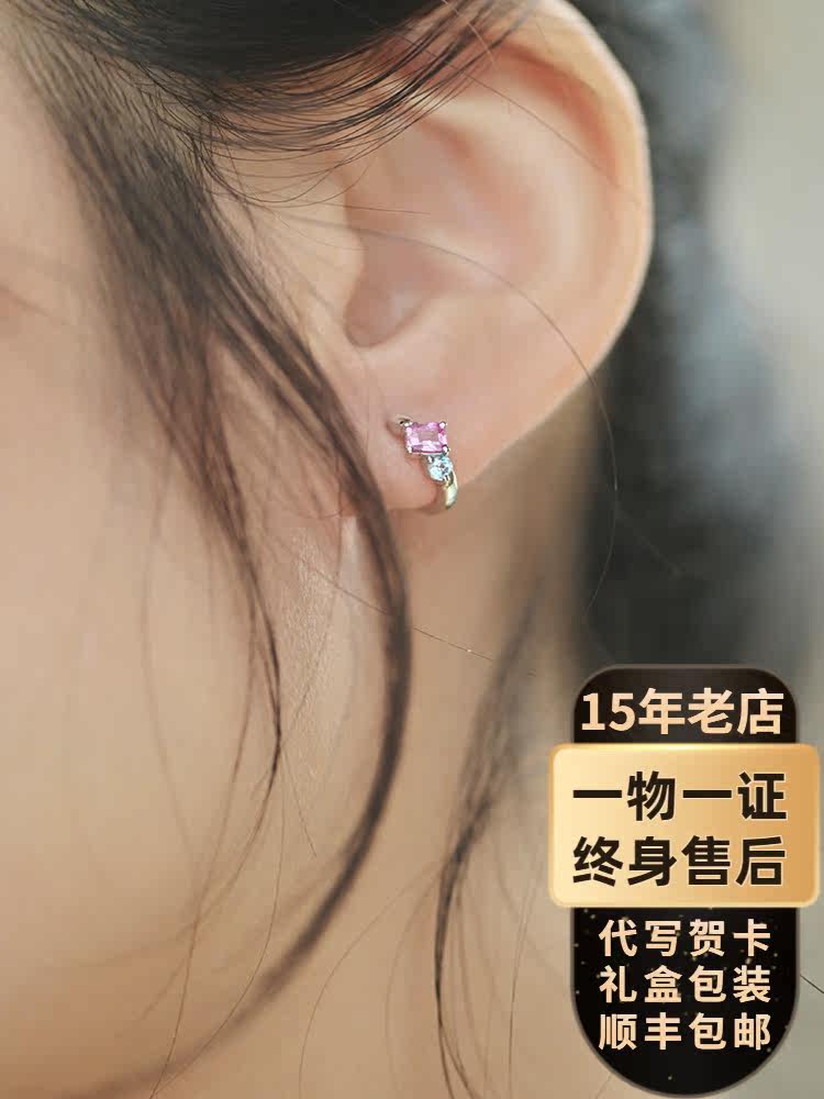 街边小灯 Розовые сапфировые платиновые маленькие серьги, белое золото 18 карат