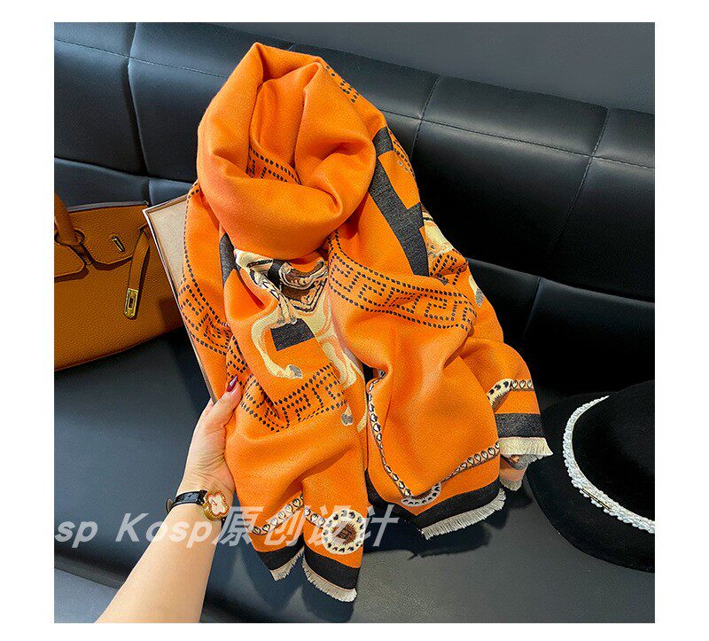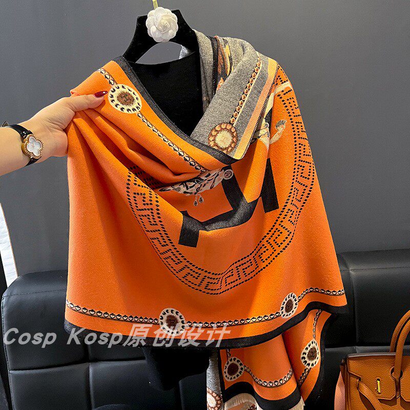 Демисезонный кашемировый шарф, удерживающая тепло универсальная накидка с буквами с кисточками, Франция