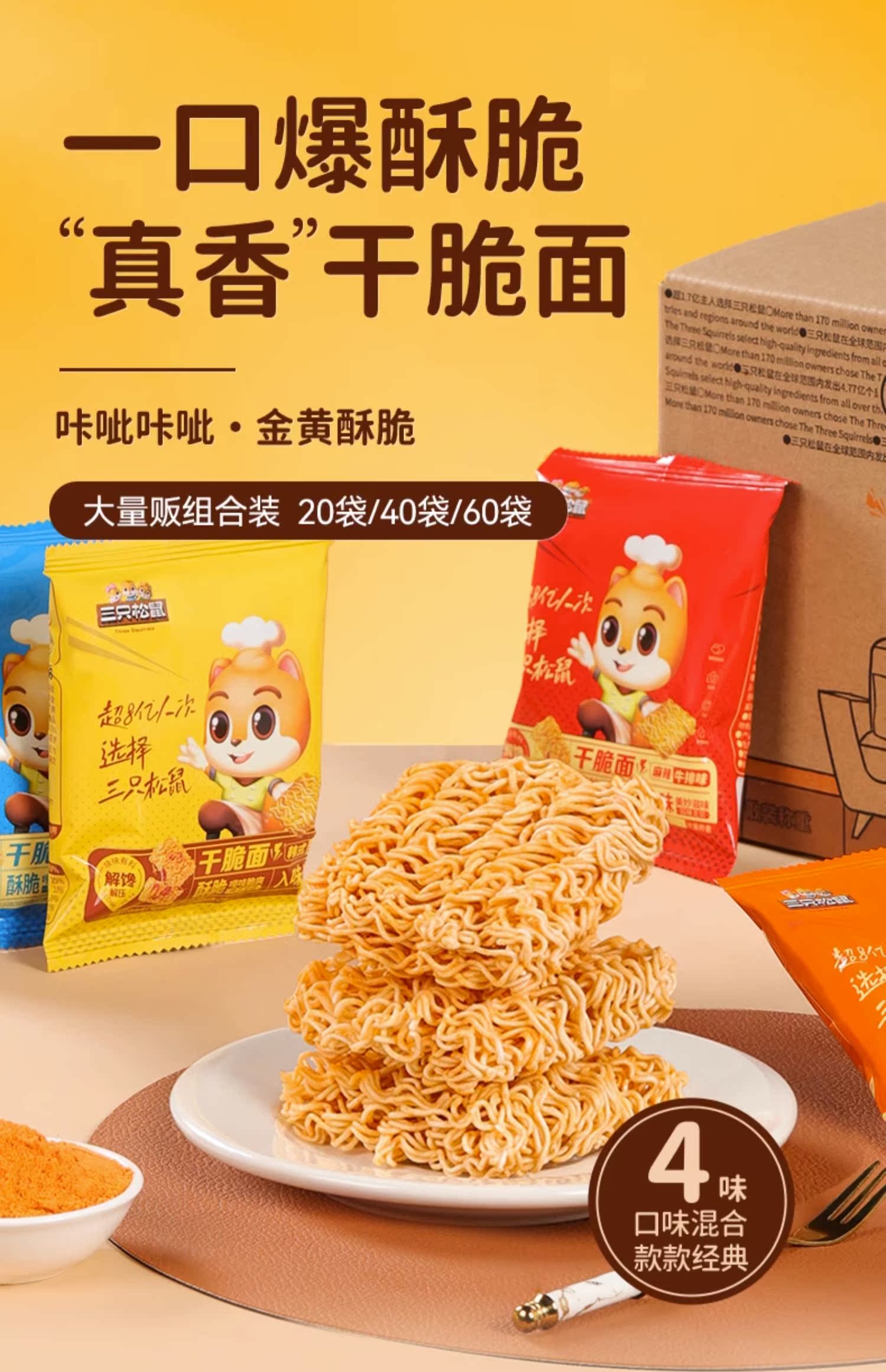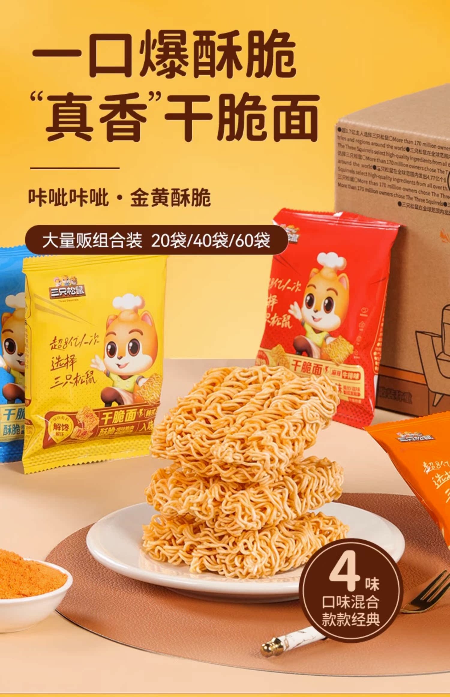 [Живи 99 минус 30] Три белки просто лапша 4 смешанные вкусы сухость пища и мгновенная лапша целая коробка маленькие закуски