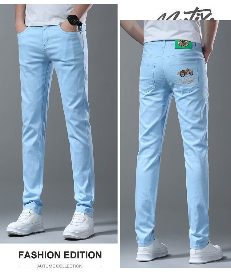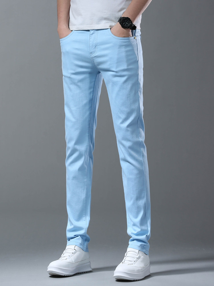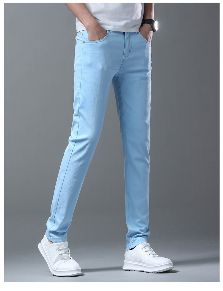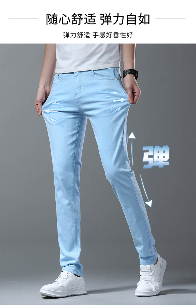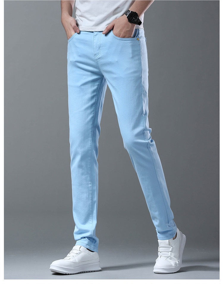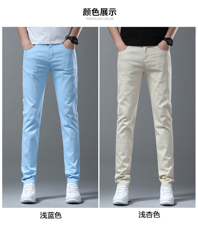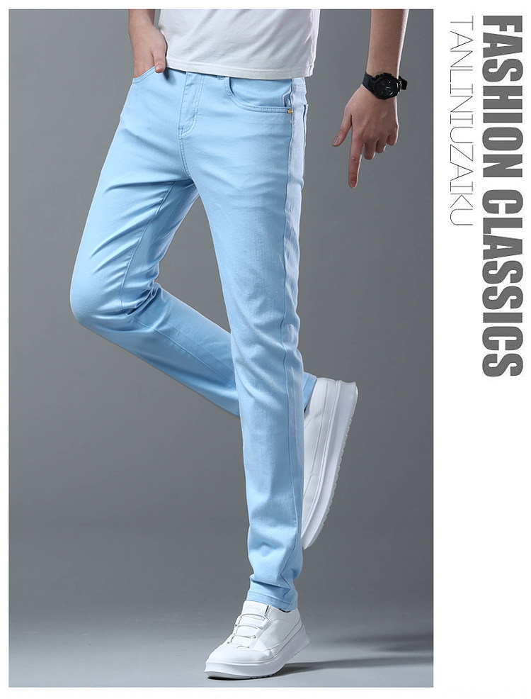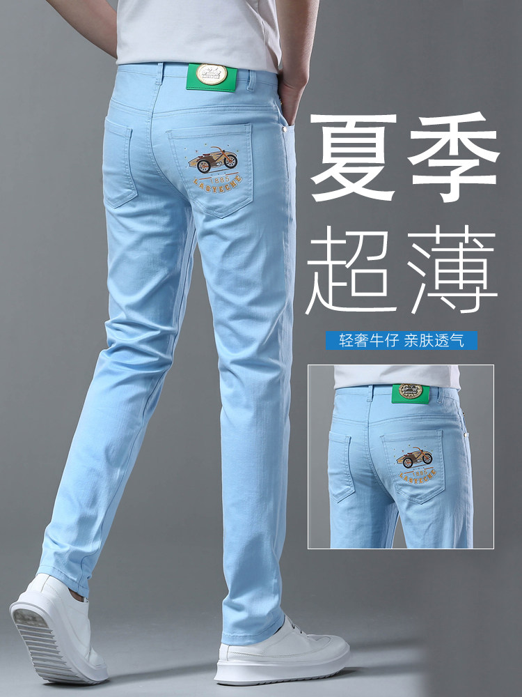 Летние тонкие джинсы, мужские эластичные штаны, повседневные брюки