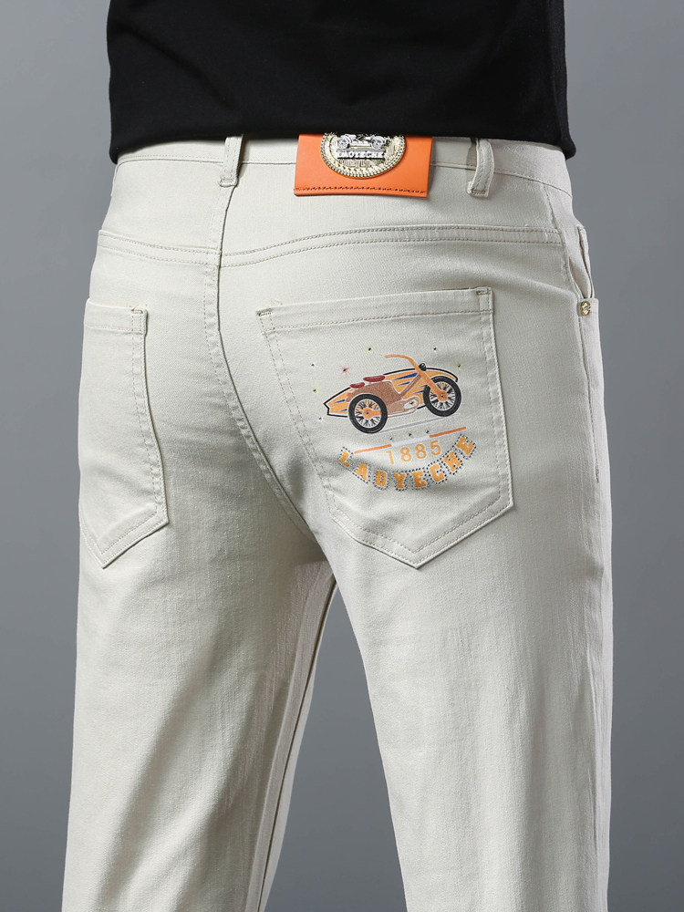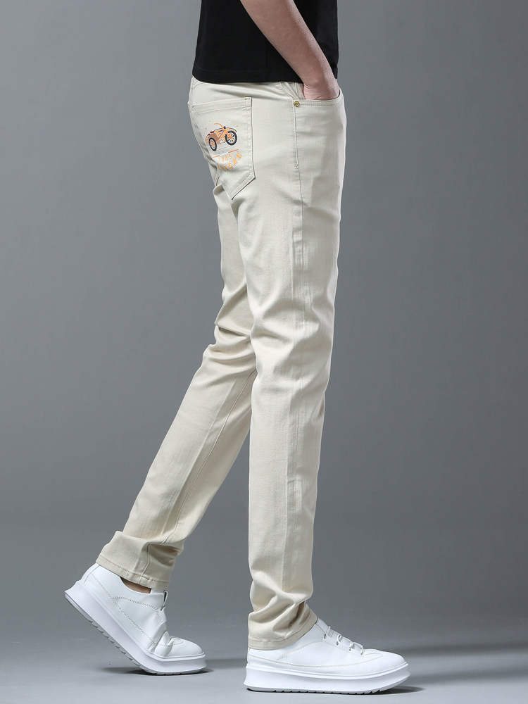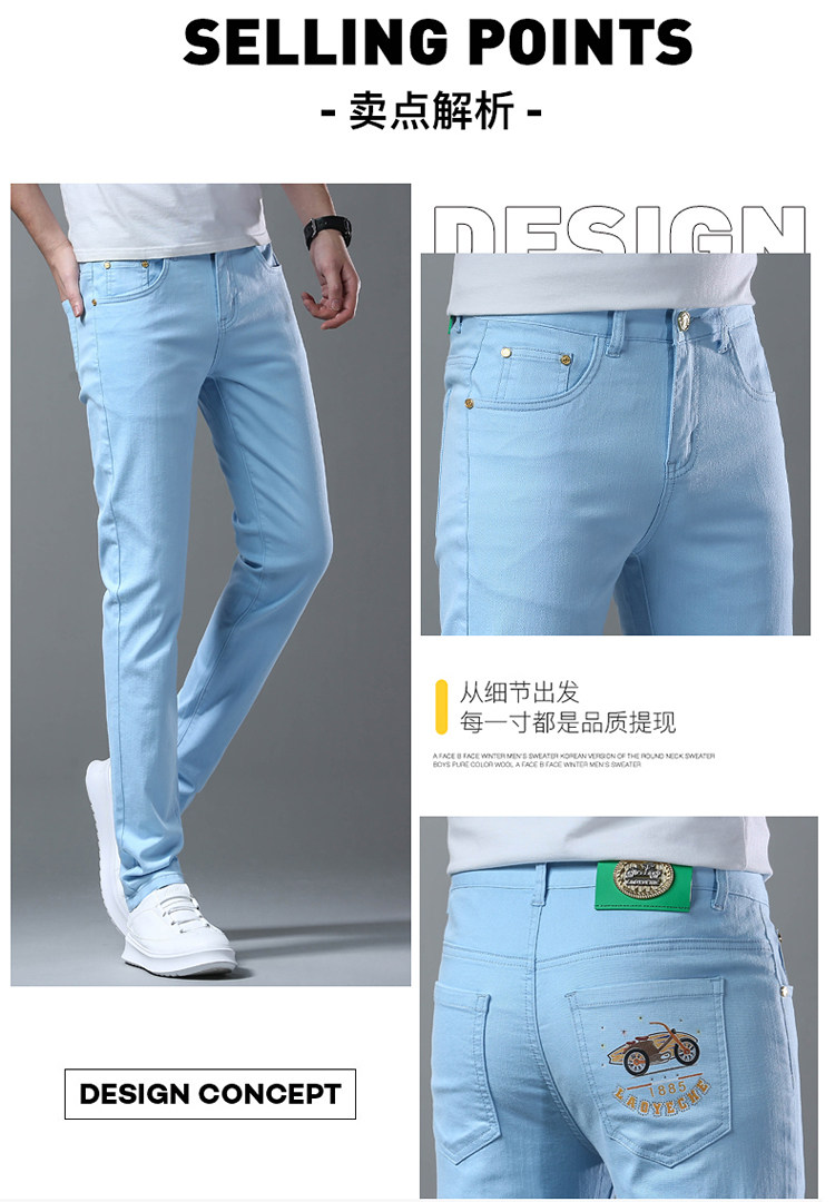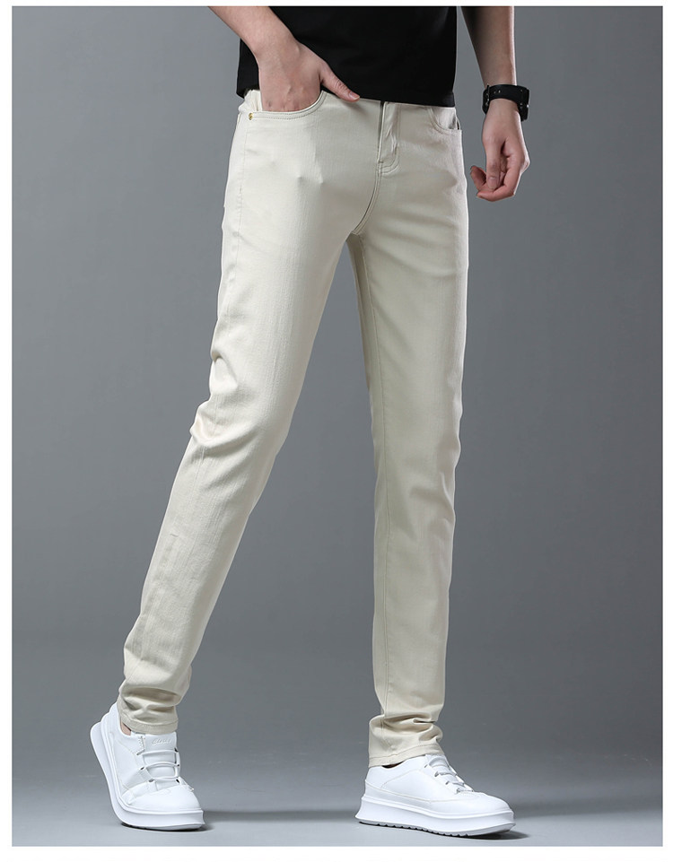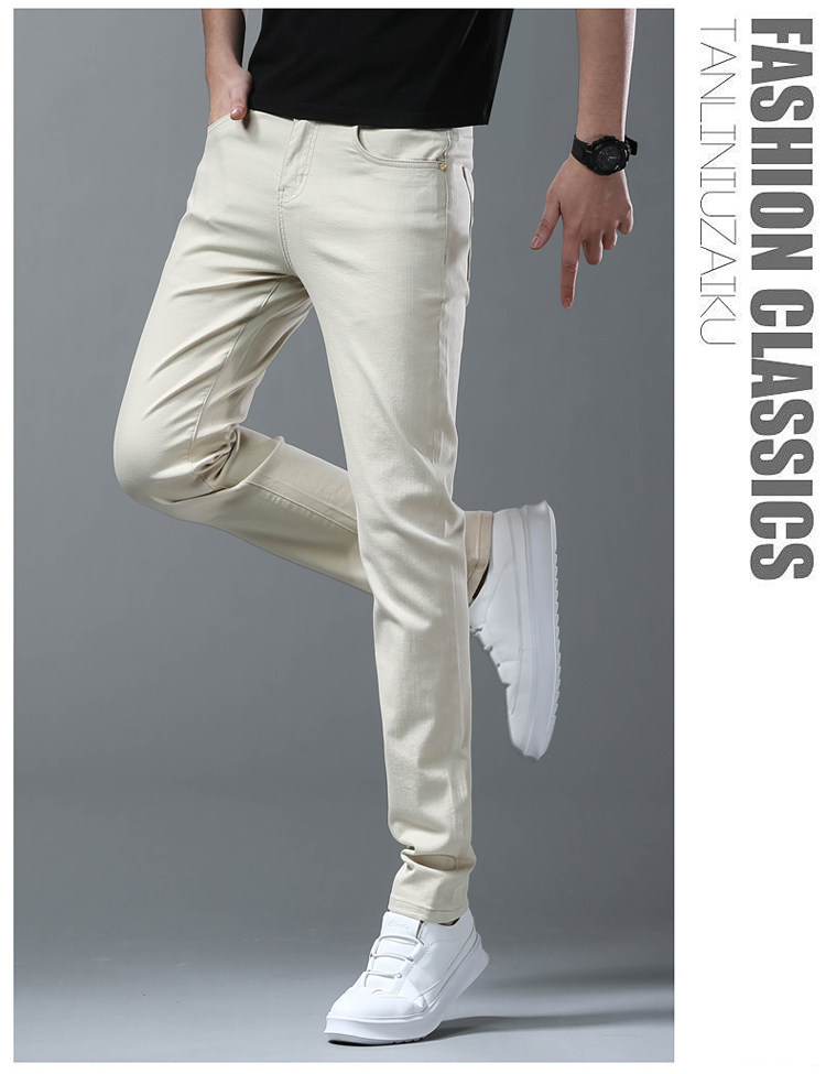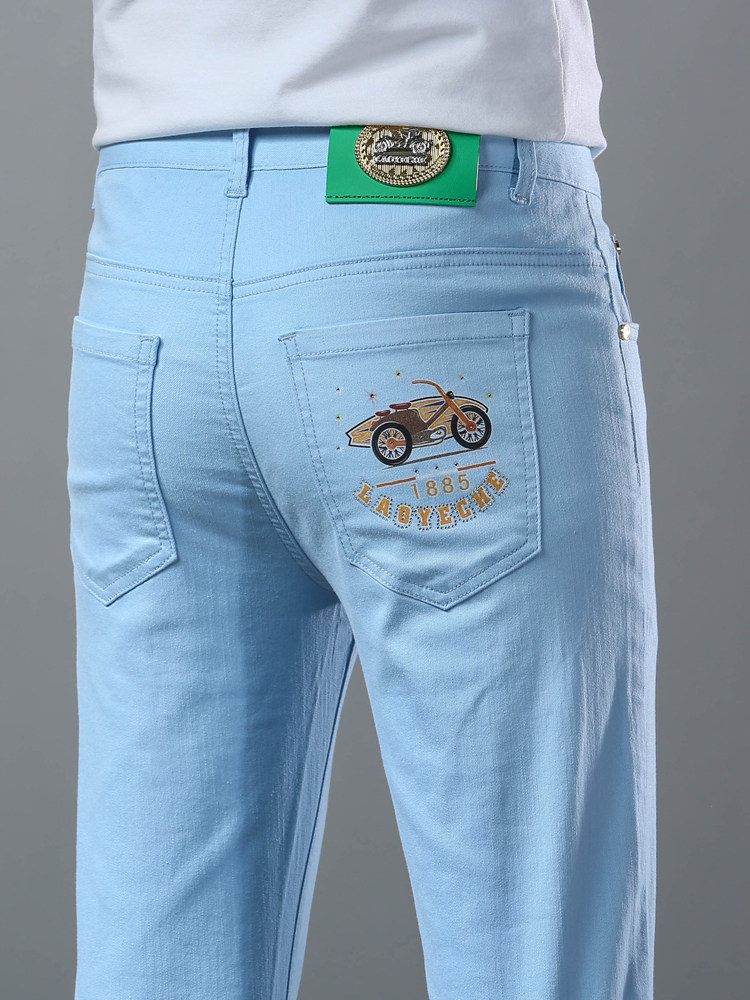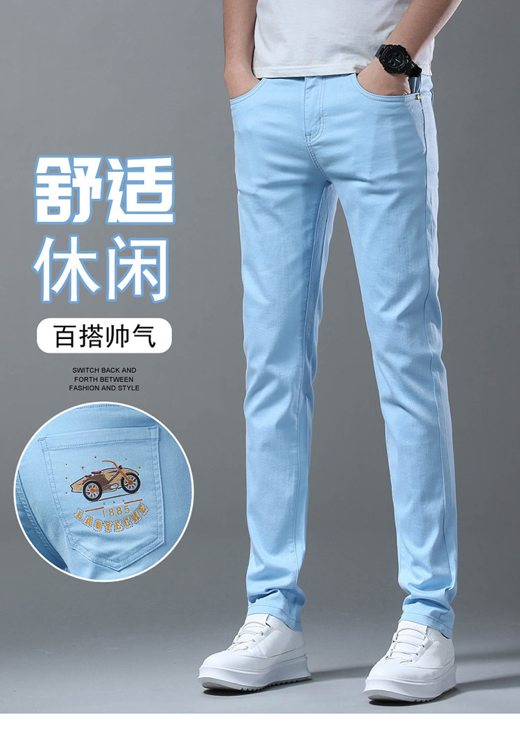 Летние тонкие джинсы, мужские эластичные штаны, повседневные брюки