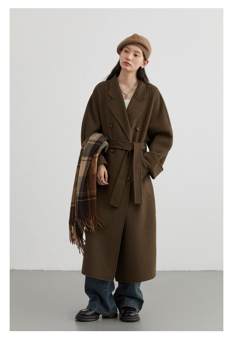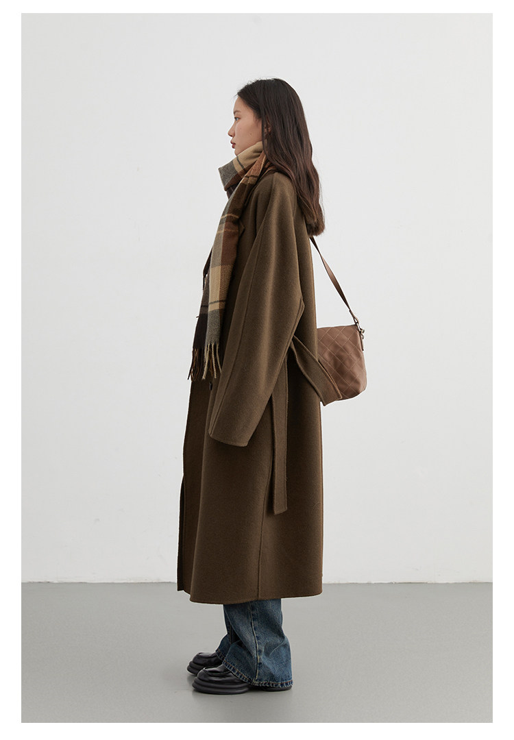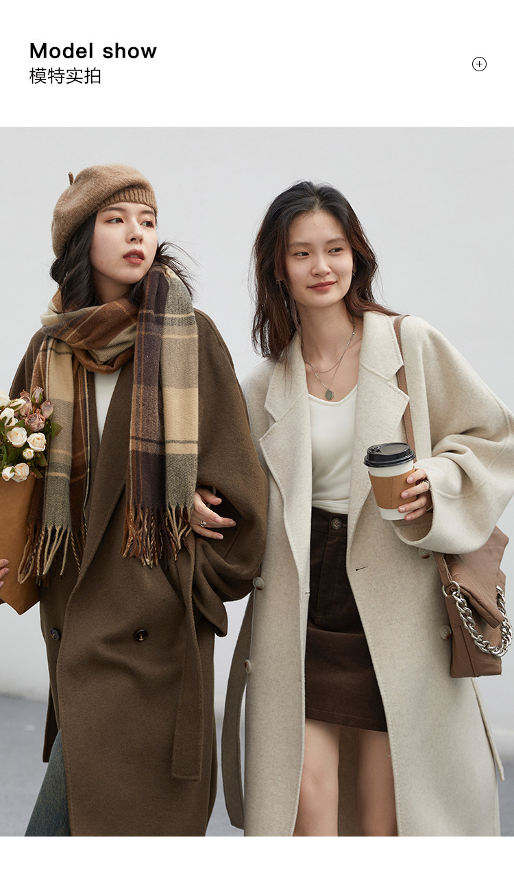 | Ремень закрыт до талии, подчеркивая кривую тела | Двойная шерстяная ткань, вертикальное ощущение блестящее |