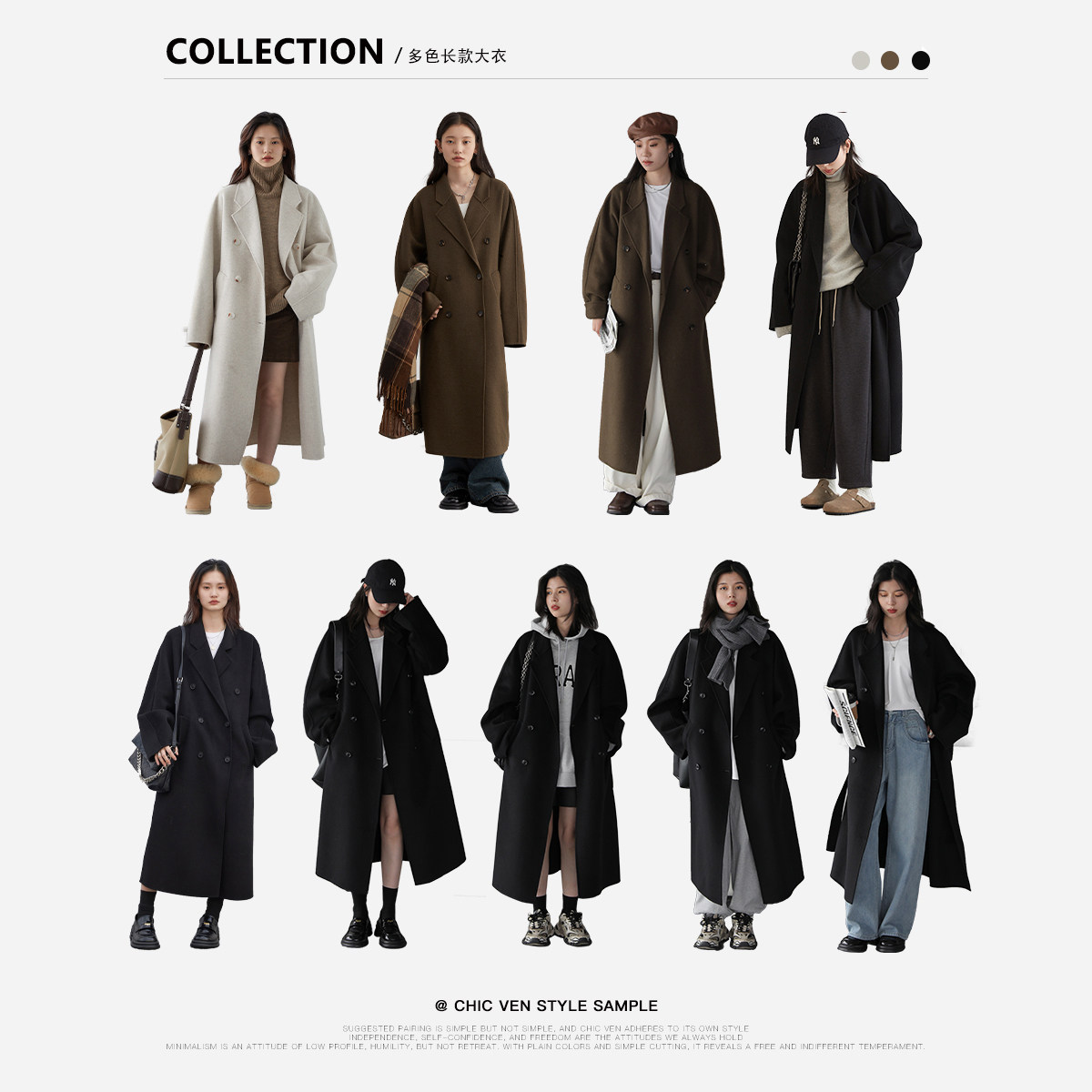 Длинный микро -кокун -силуэт излучает спокойное и стабильное обаяние, украшение с двойным ростом пряжки Он сохраняет классические элементы шерстяного пальто и уравновешивает общее ощущение формальности и лени. Даже версия рукава, если вам не нравится обычная версия для наплечника, у вас может быть больше вариантов Линии плеча более гладкие и аккуратные, а спина толстая и тонкая Трехмерное мастерство с трехмерным костяным швами изысканна, чтобы добавить текстуру к простой версии Воротник и плечевые швы сшивают бусинками ручной работы, которые стоит времени и стоимости 3 классических цветов, не выбирайте людей!Хорошо ослабленная зимняя майка ~
