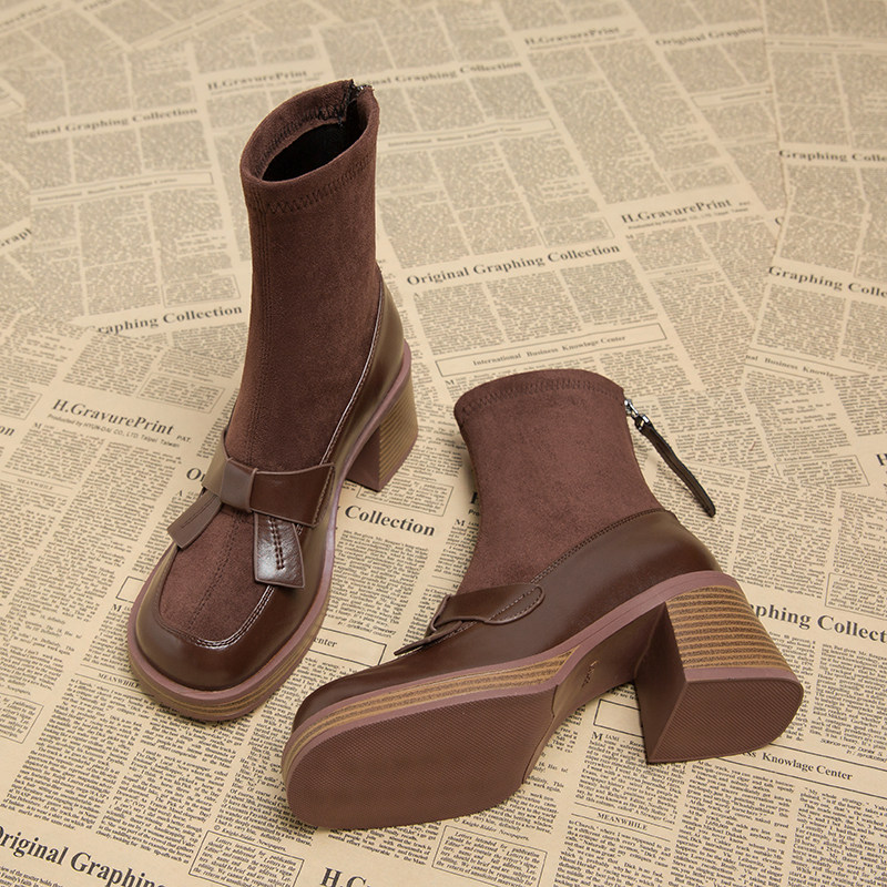 Демисезонные весенние ботильоны, высокие короткие сапоги, ботинки, в корейском стиле, осенние, в западном стиле