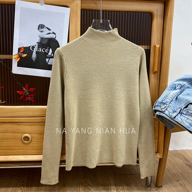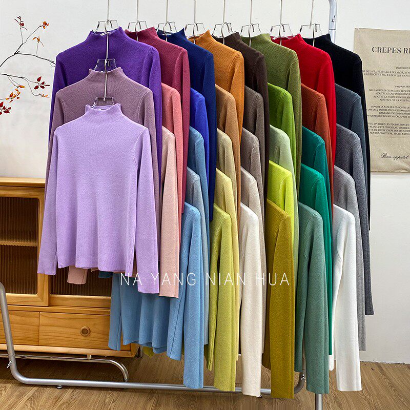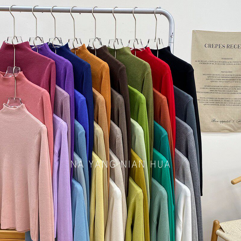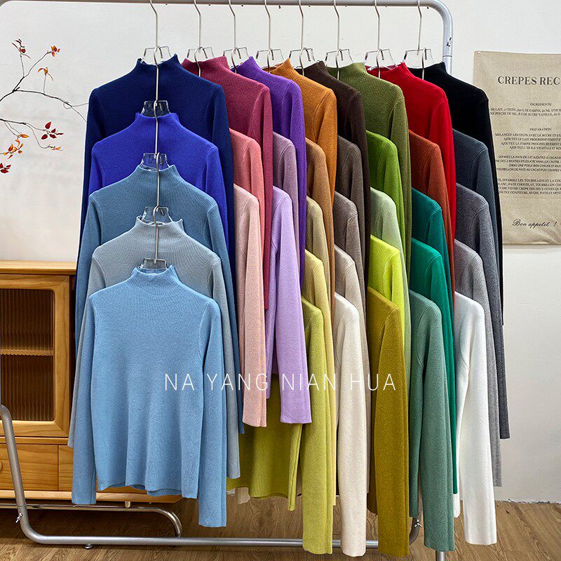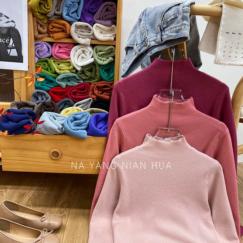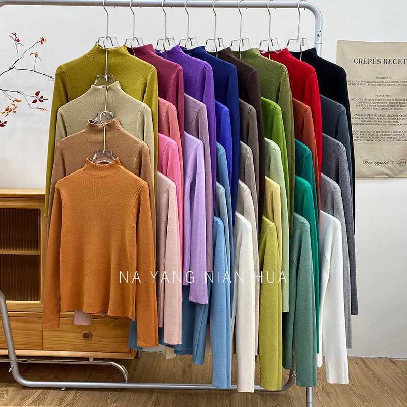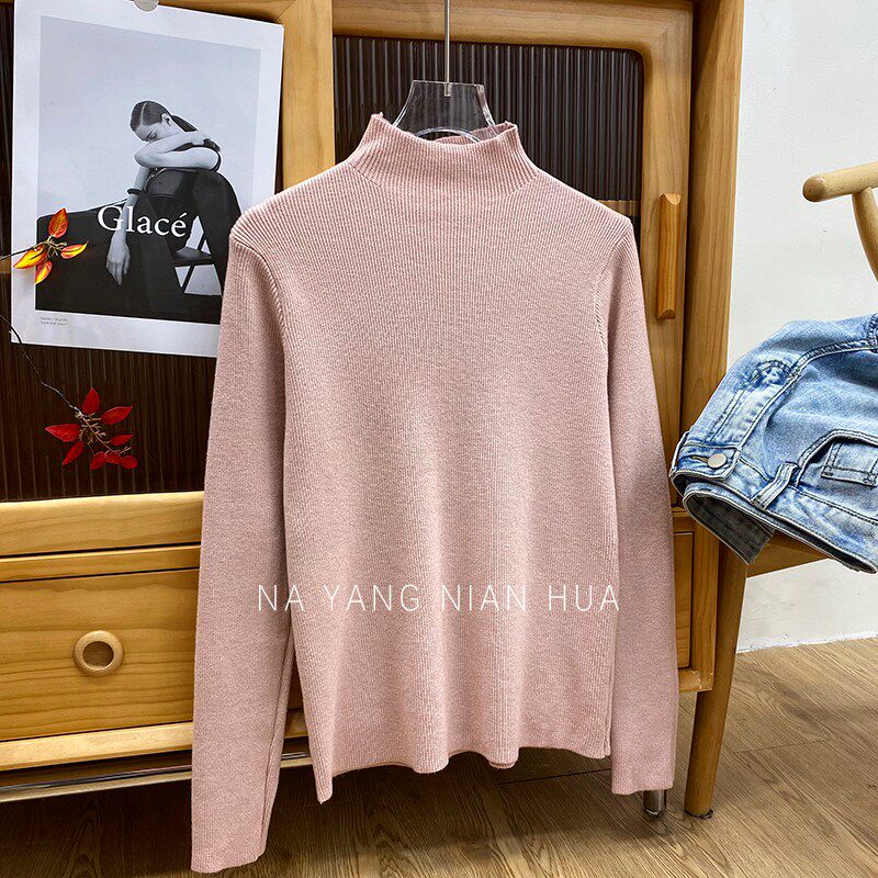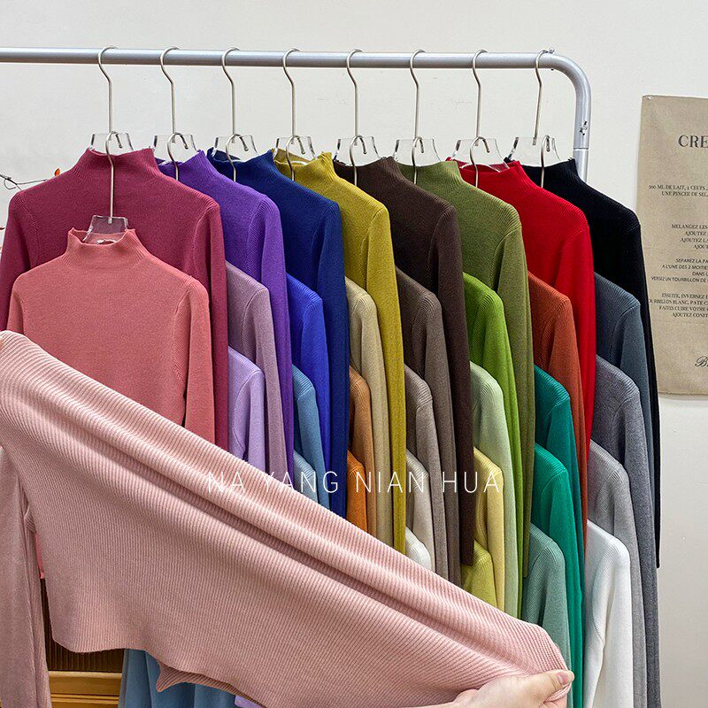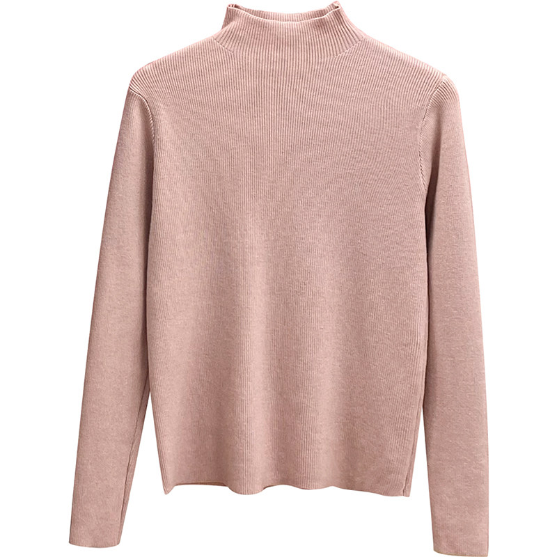 Трикотажный лонгслив, ретро базовый свитер, высокий воротник, облегающий крой