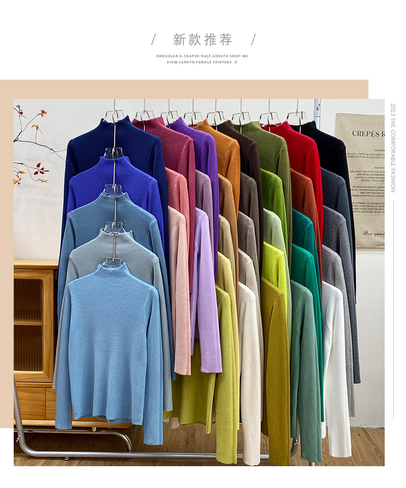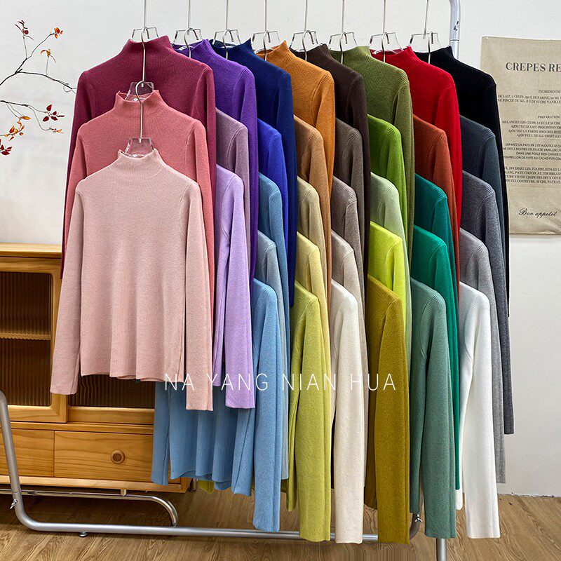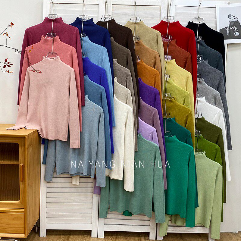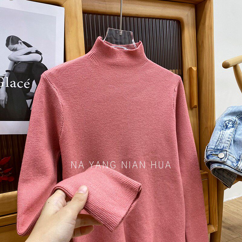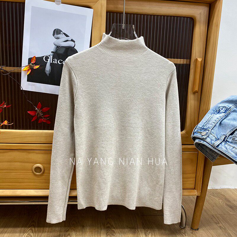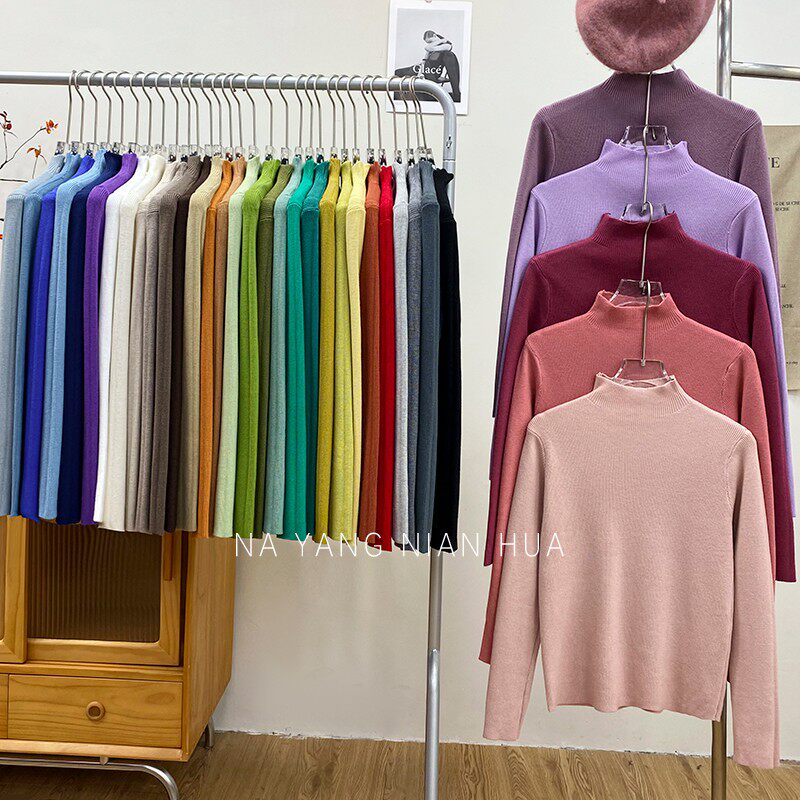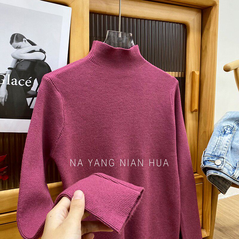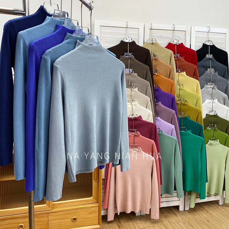 Трикотажный лонгслив, ретро базовый свитер, высокий воротник, облегающий крой