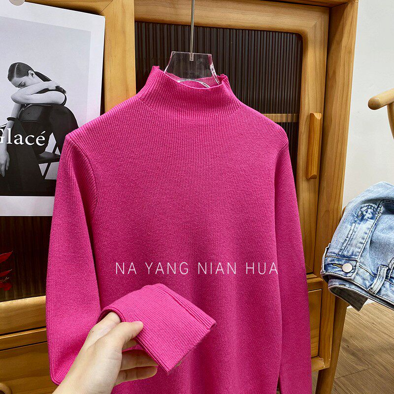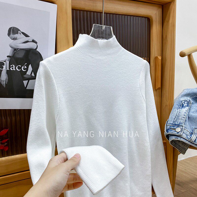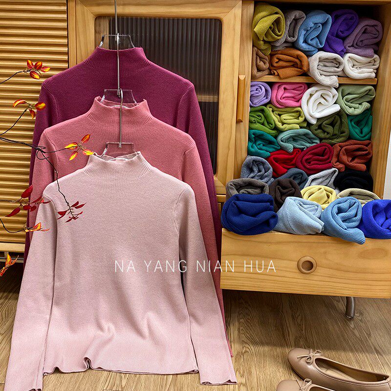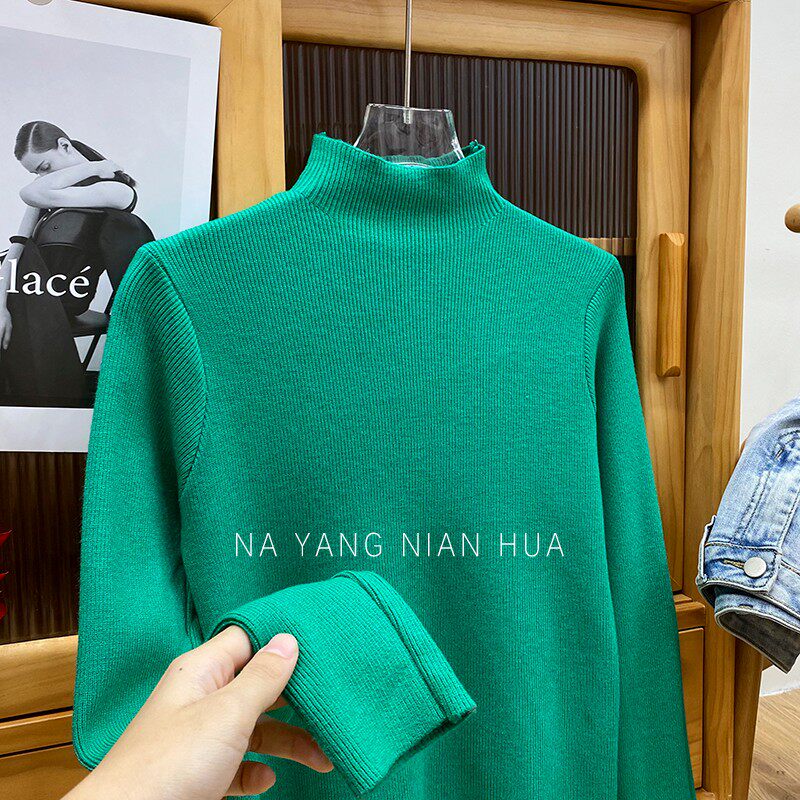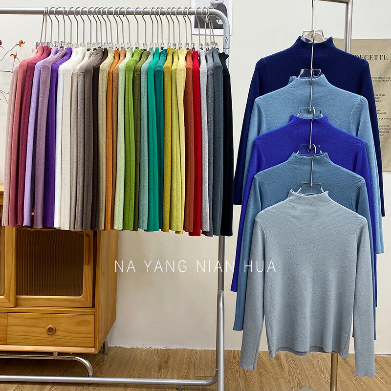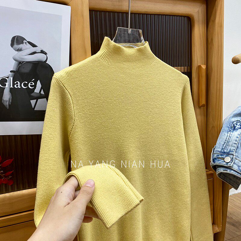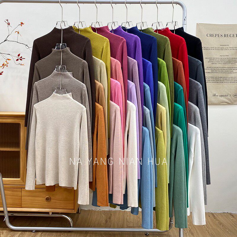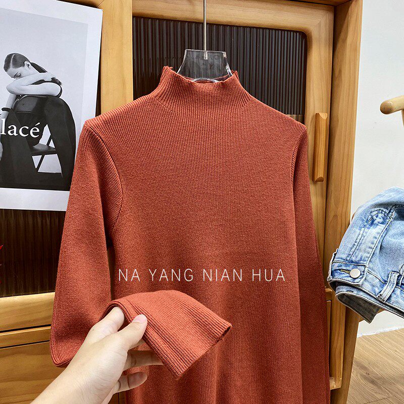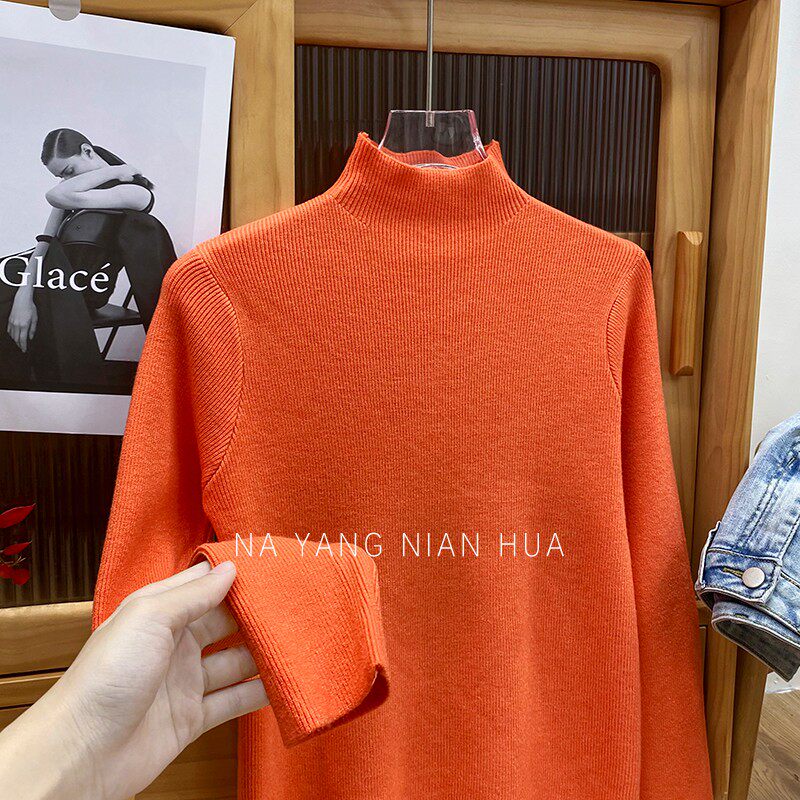 Трикотажный лонгслив, ретро базовый свитер, высокий воротник, облегающий крой