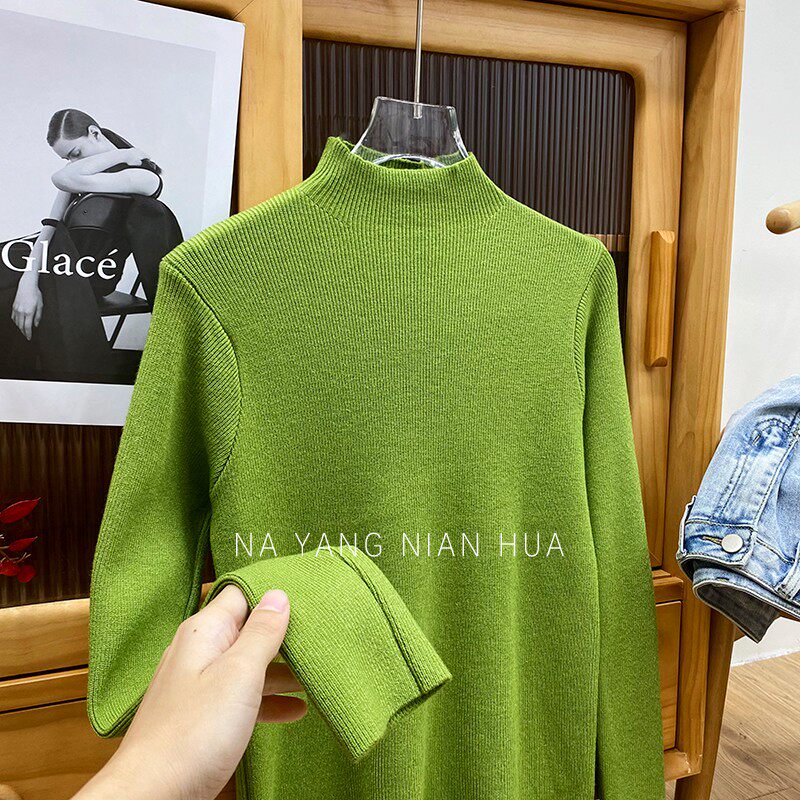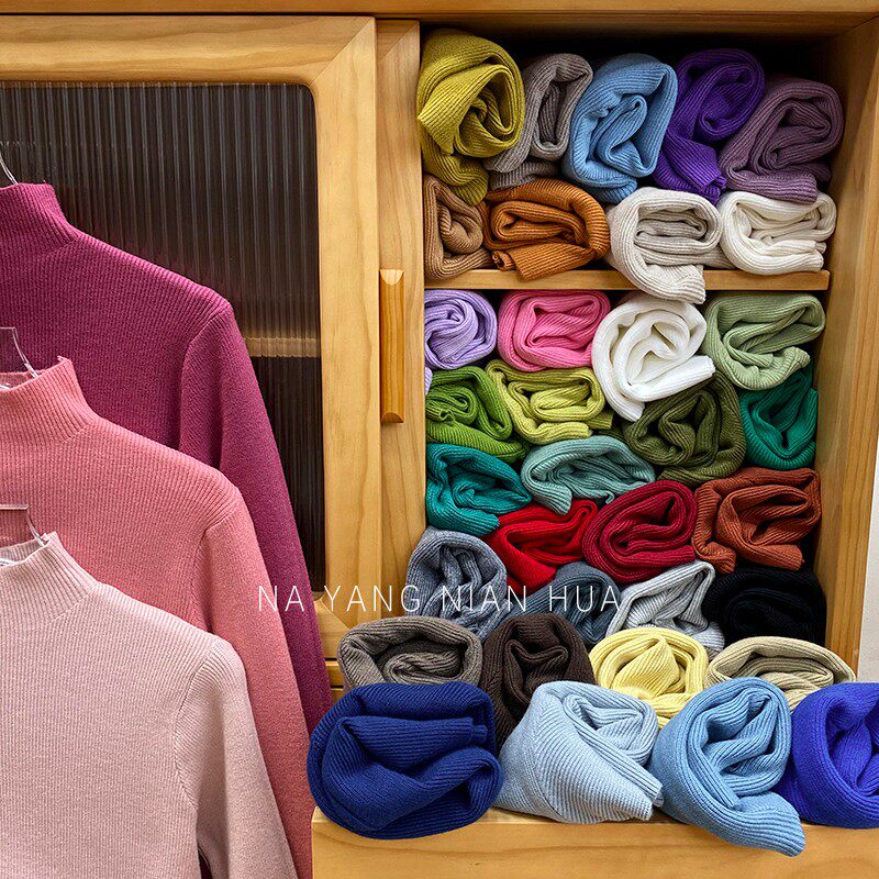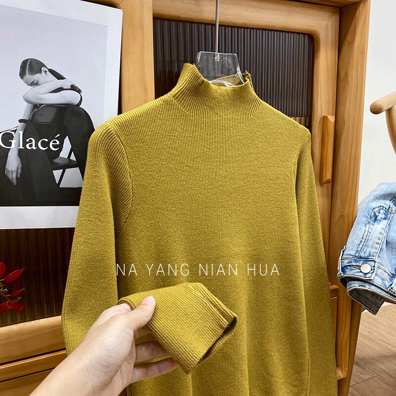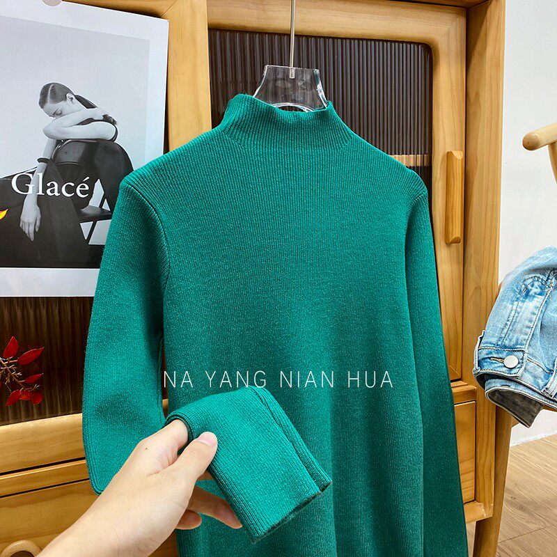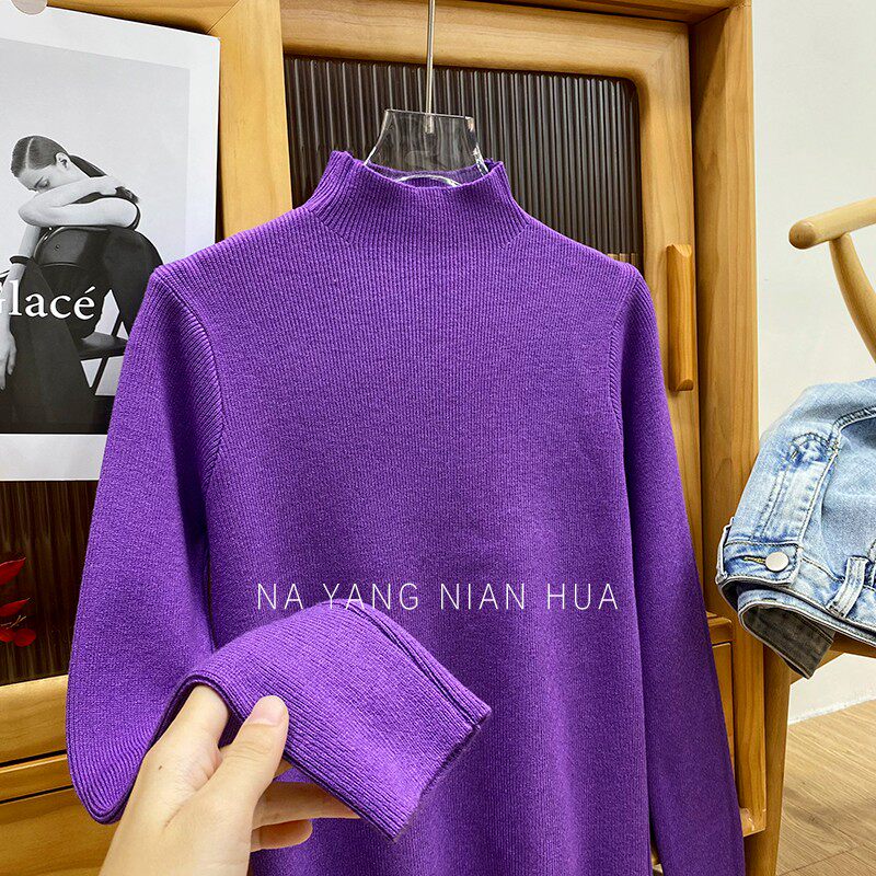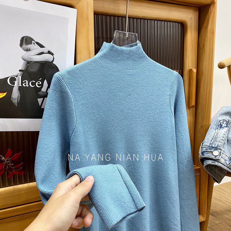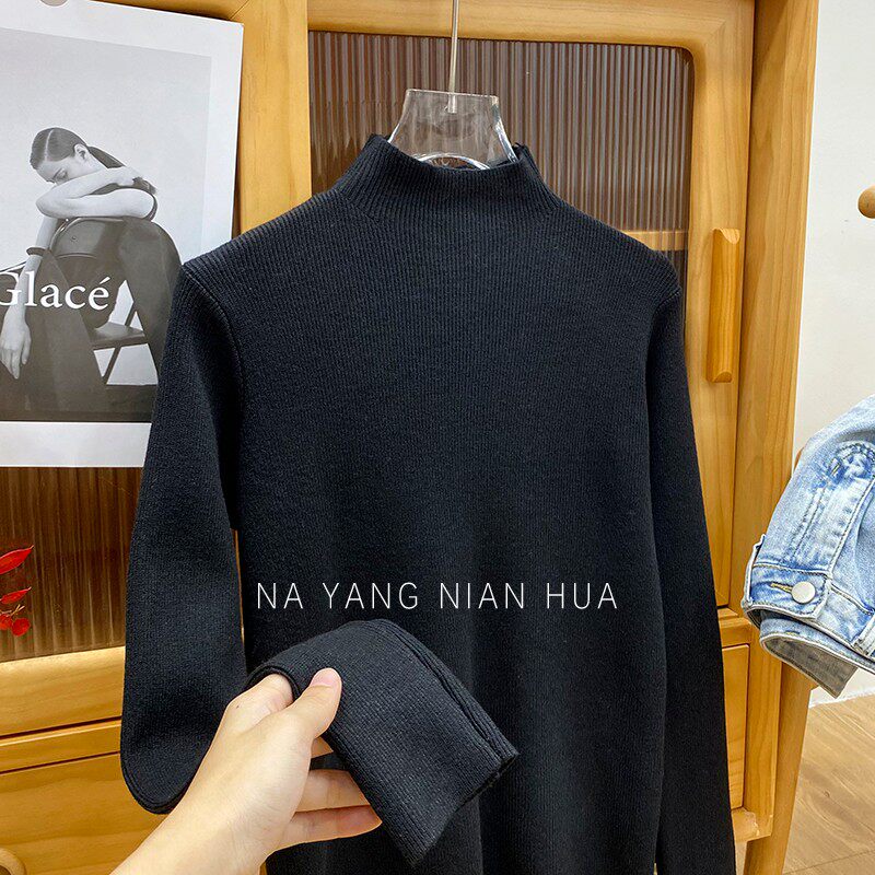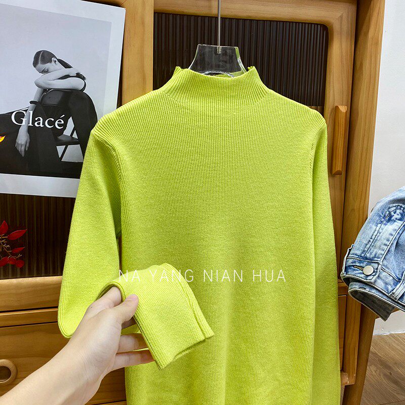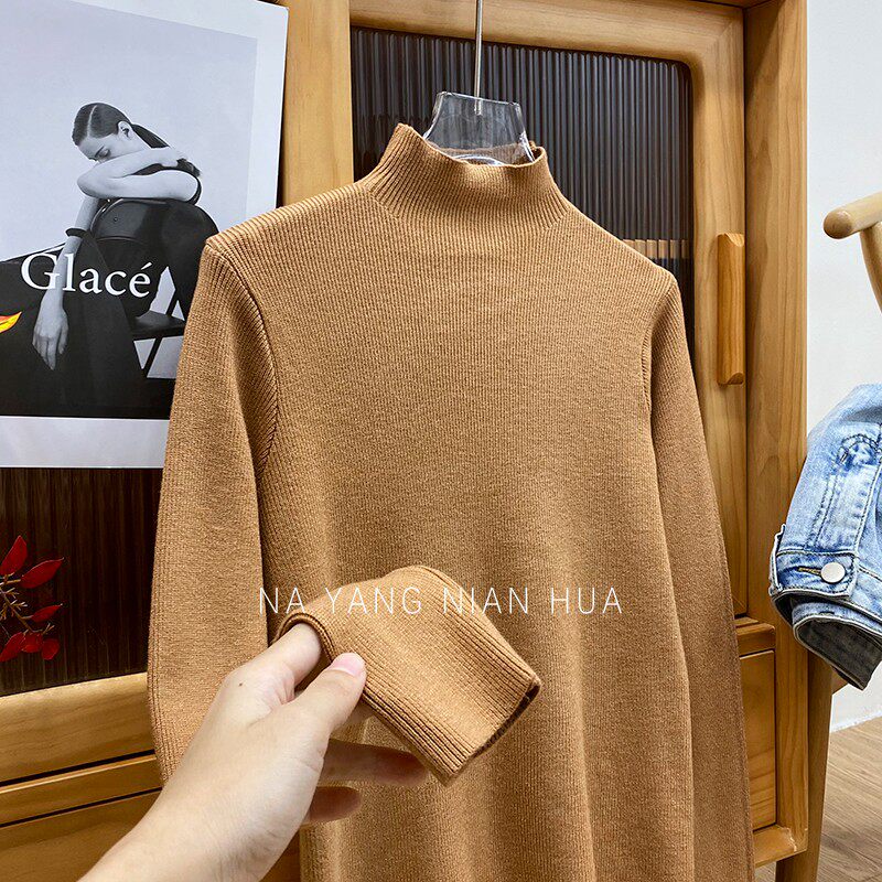 Трикотажный лонгслив, ретро базовый свитер, высокий воротник, облегающий крой