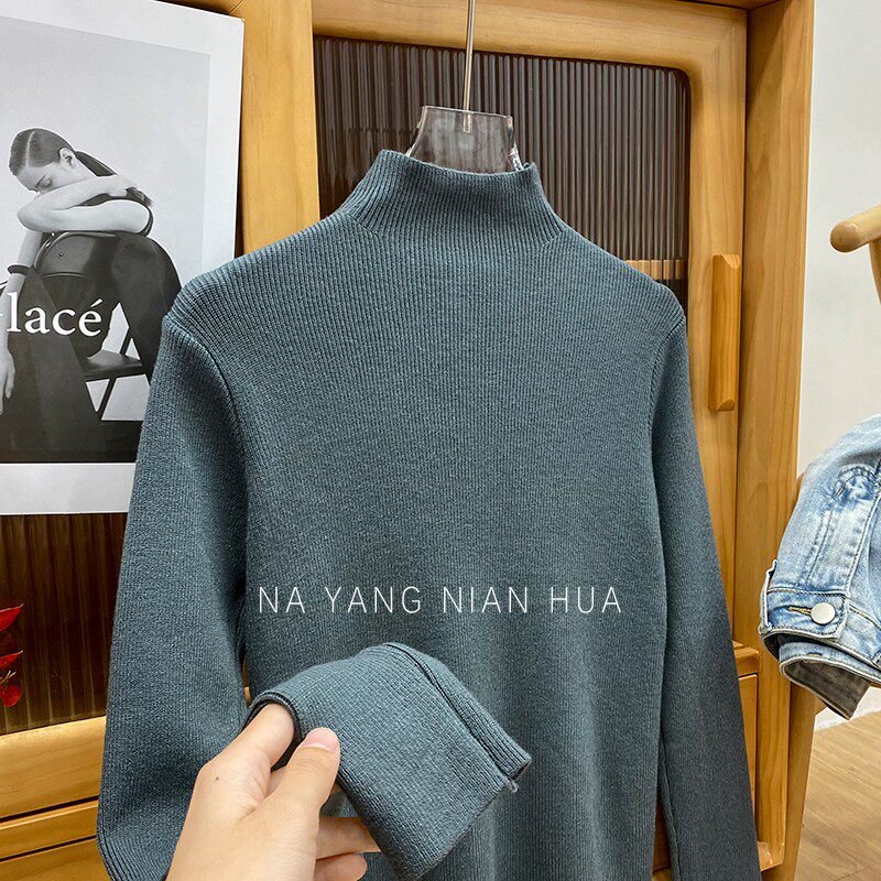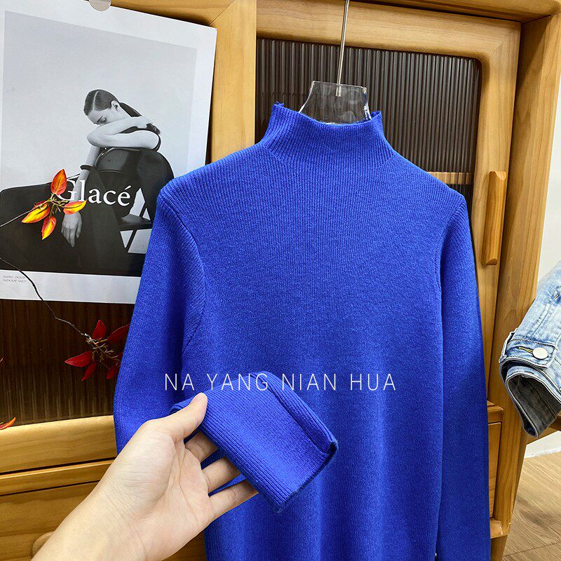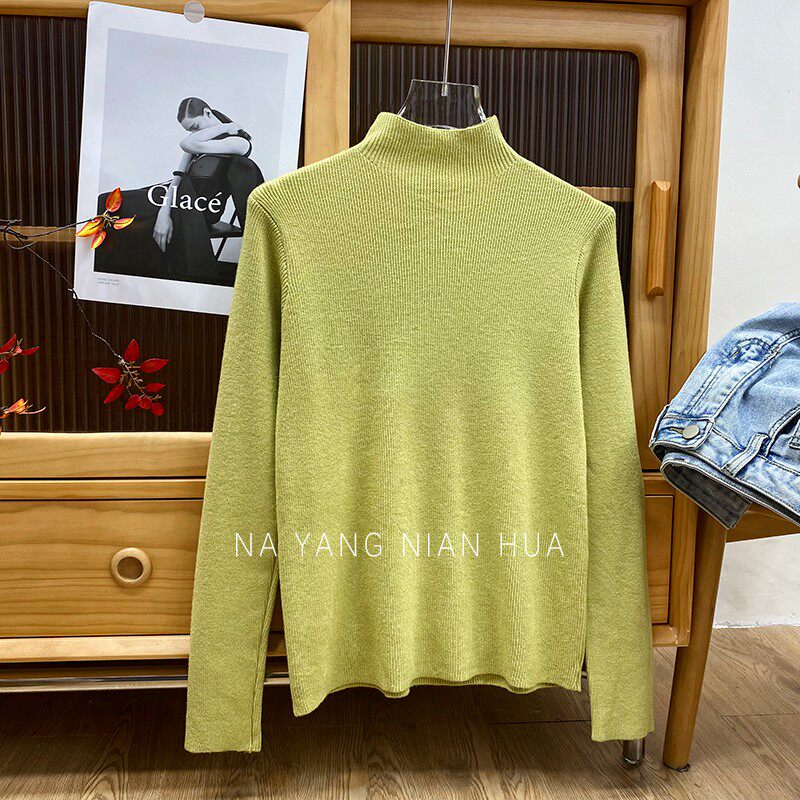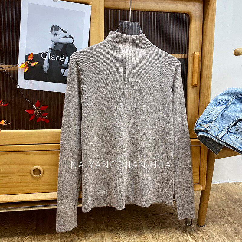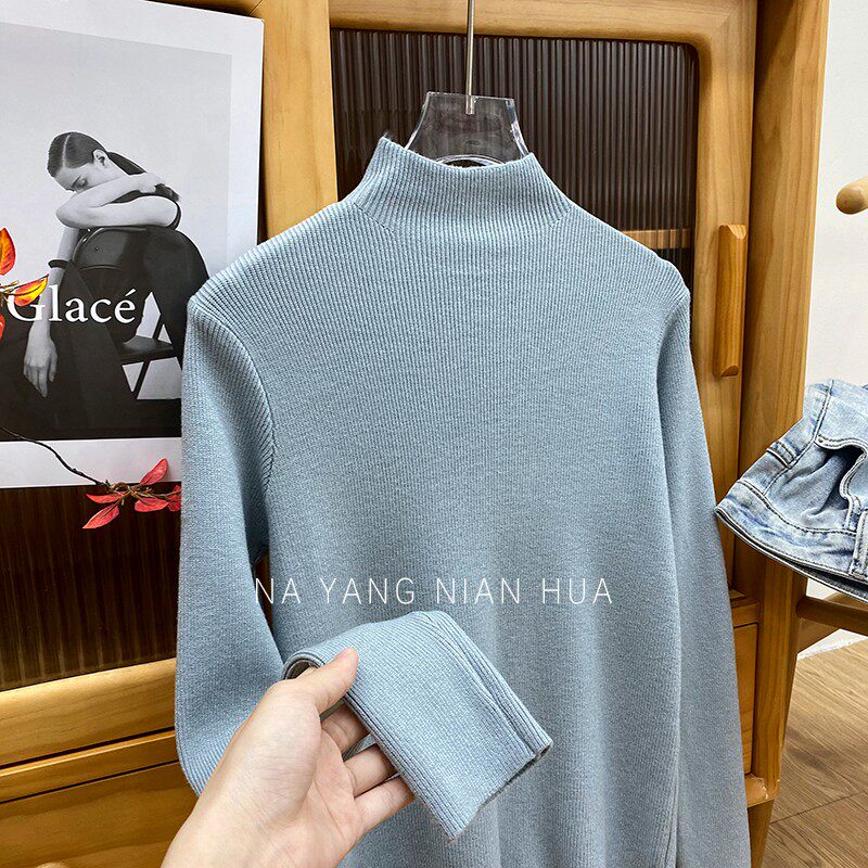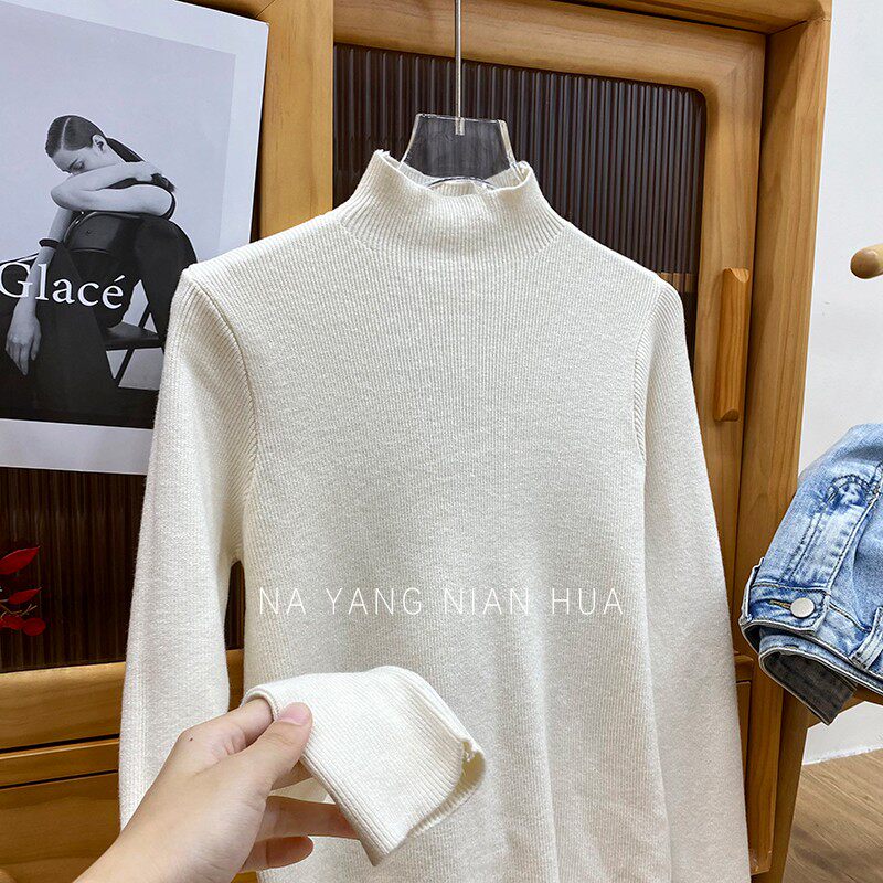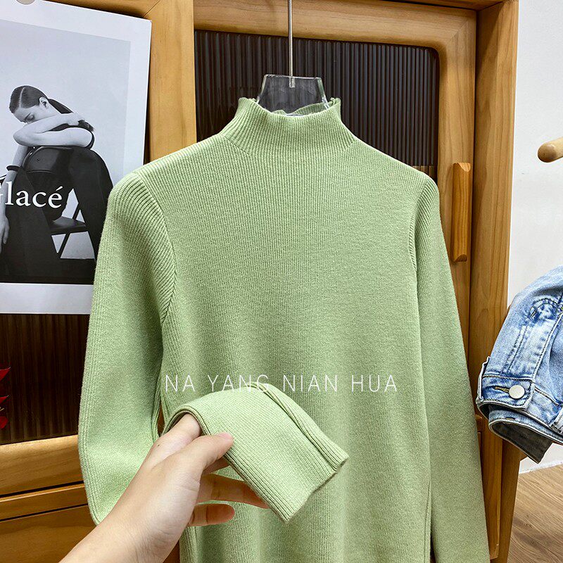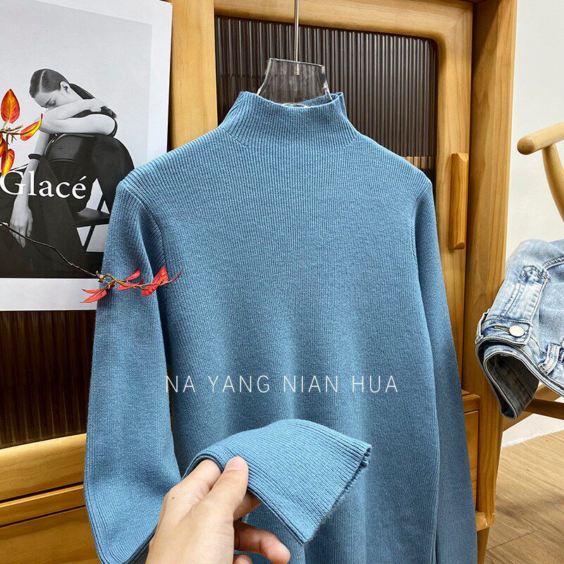 Трикотажный лонгслив, ретро базовый свитер, высокий воротник, облегающий крой