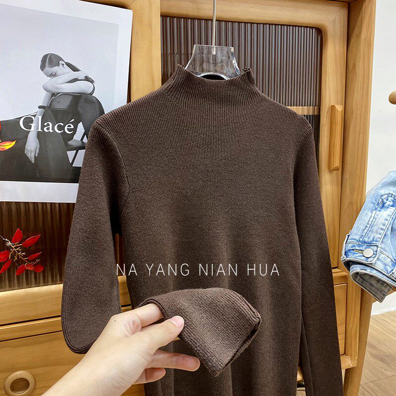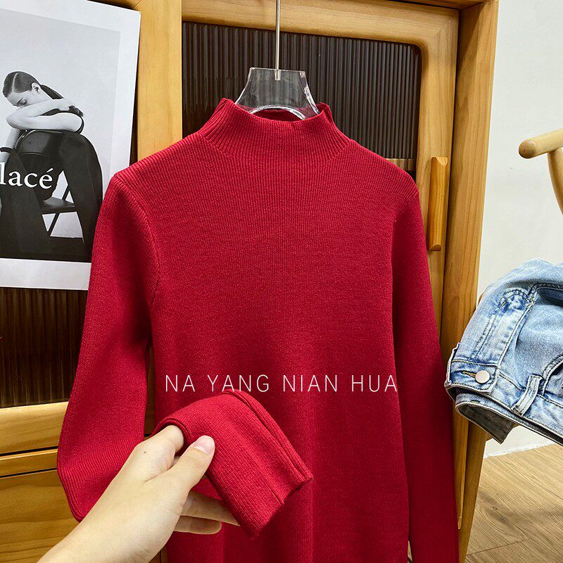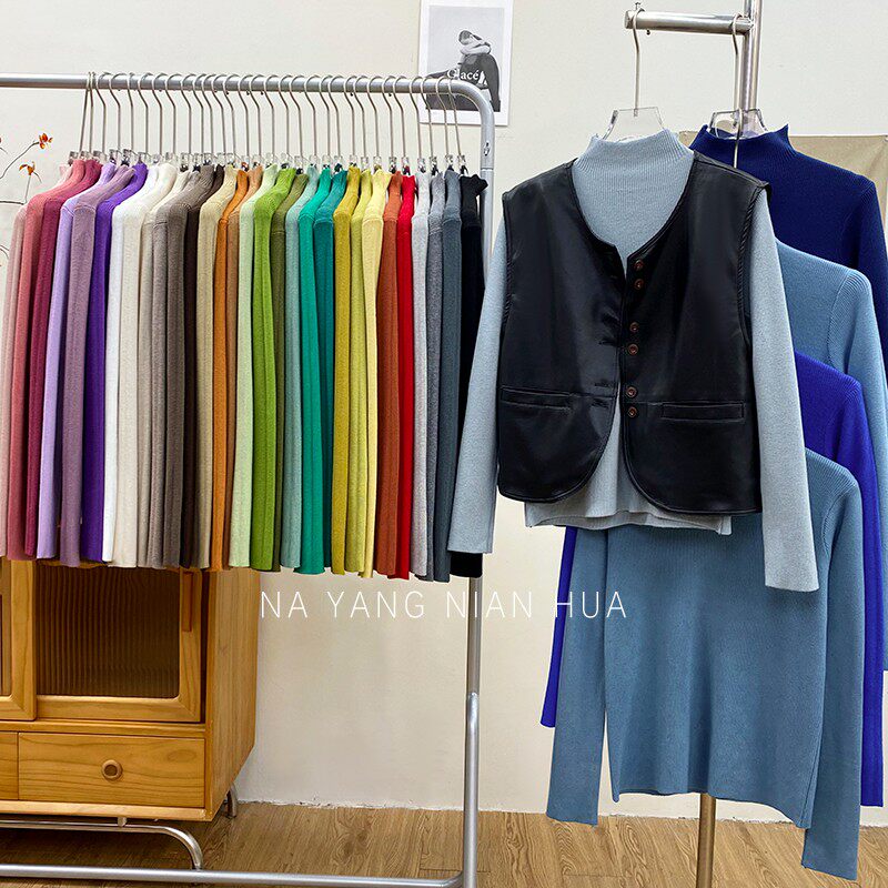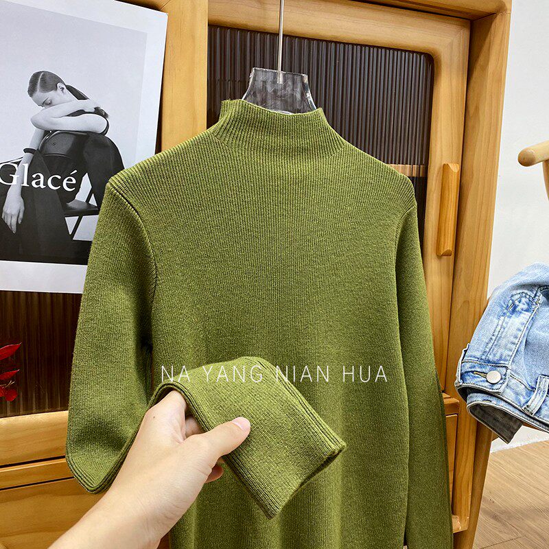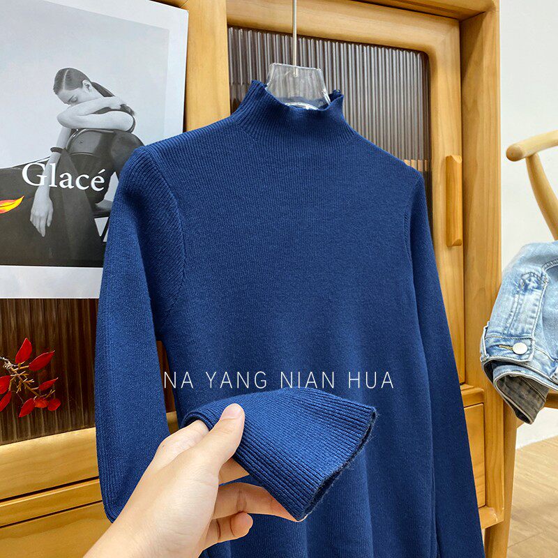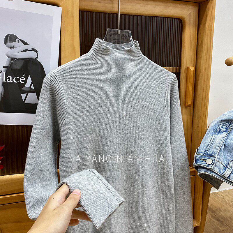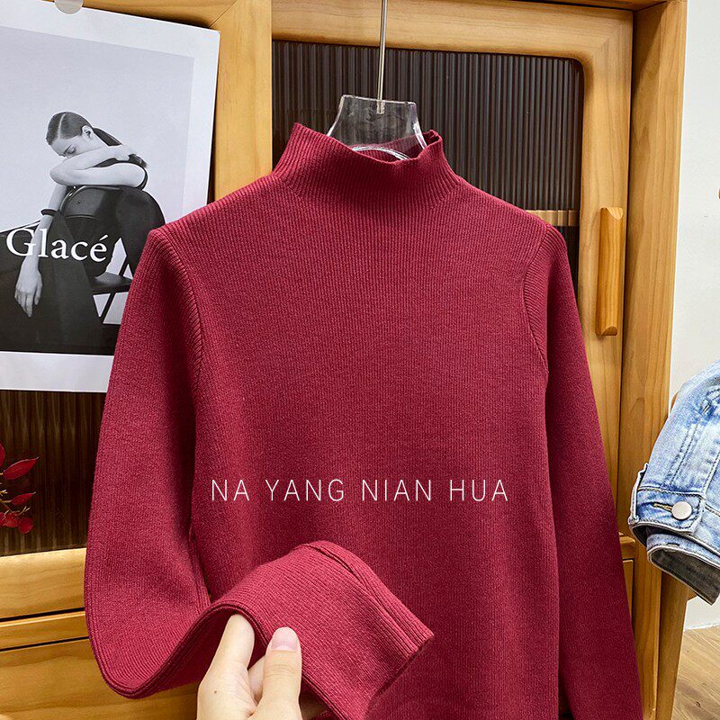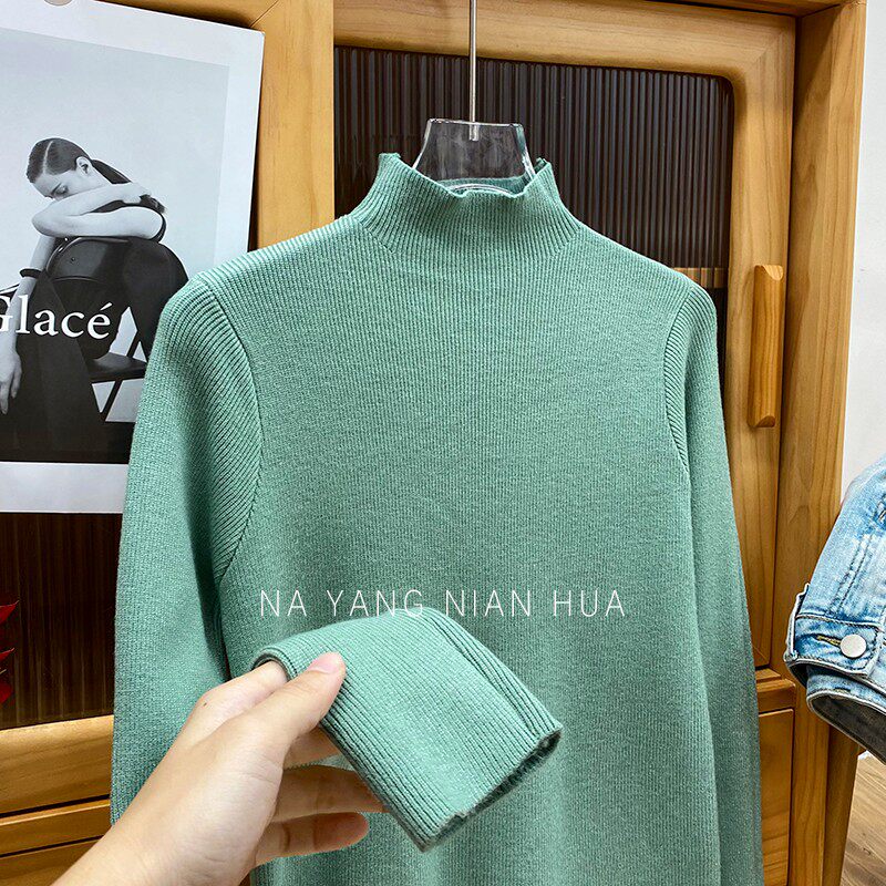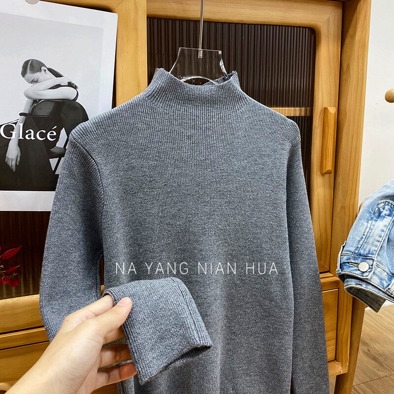 Трикотажный лонгслив, ретро базовый свитер, высокий воротник, облегающий крой